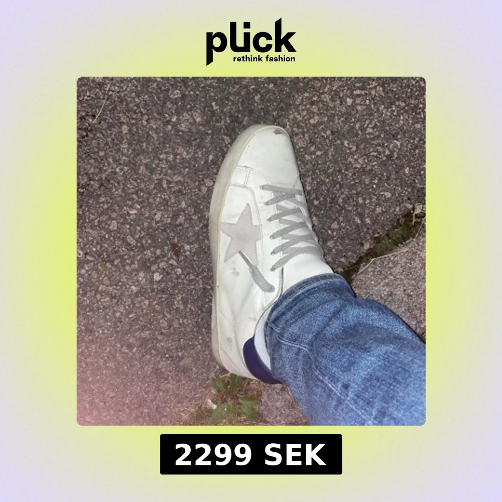 Vita sneakers från Golden Goose. Condition 8/10. Säljer pga att jag köpt nya skor. Nypris ligger runt 7000. Endast skor och låda tillkommer. Hör gärna av dig vid funderingar