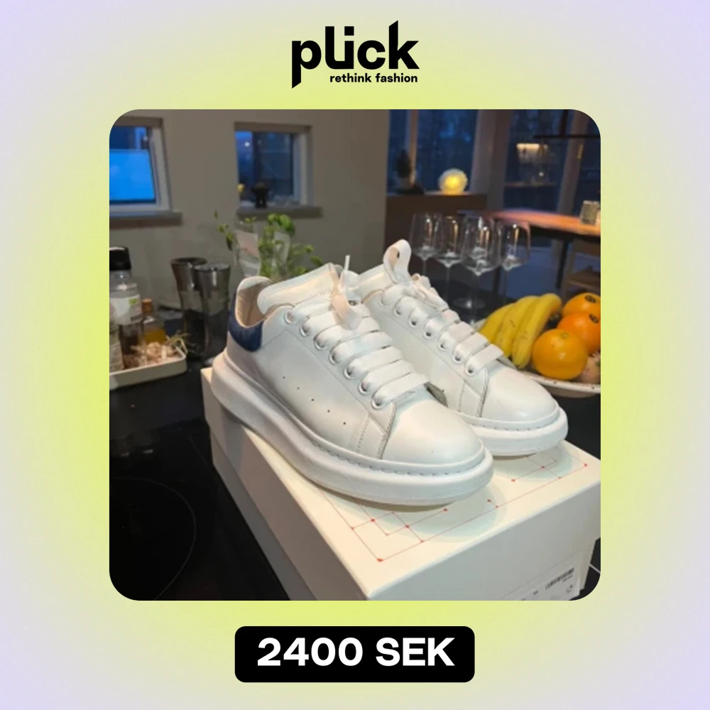 Alexander McQueen skor använda sparsamt. De är i fint skick. Lite slitage innuti skon och på gamla sulan. Har bytt sulor till ett par nya vita. Några små märken på skorna men annars bra skick. Nya skosnören. Kvitto och originalbilden finns.fr Miinto