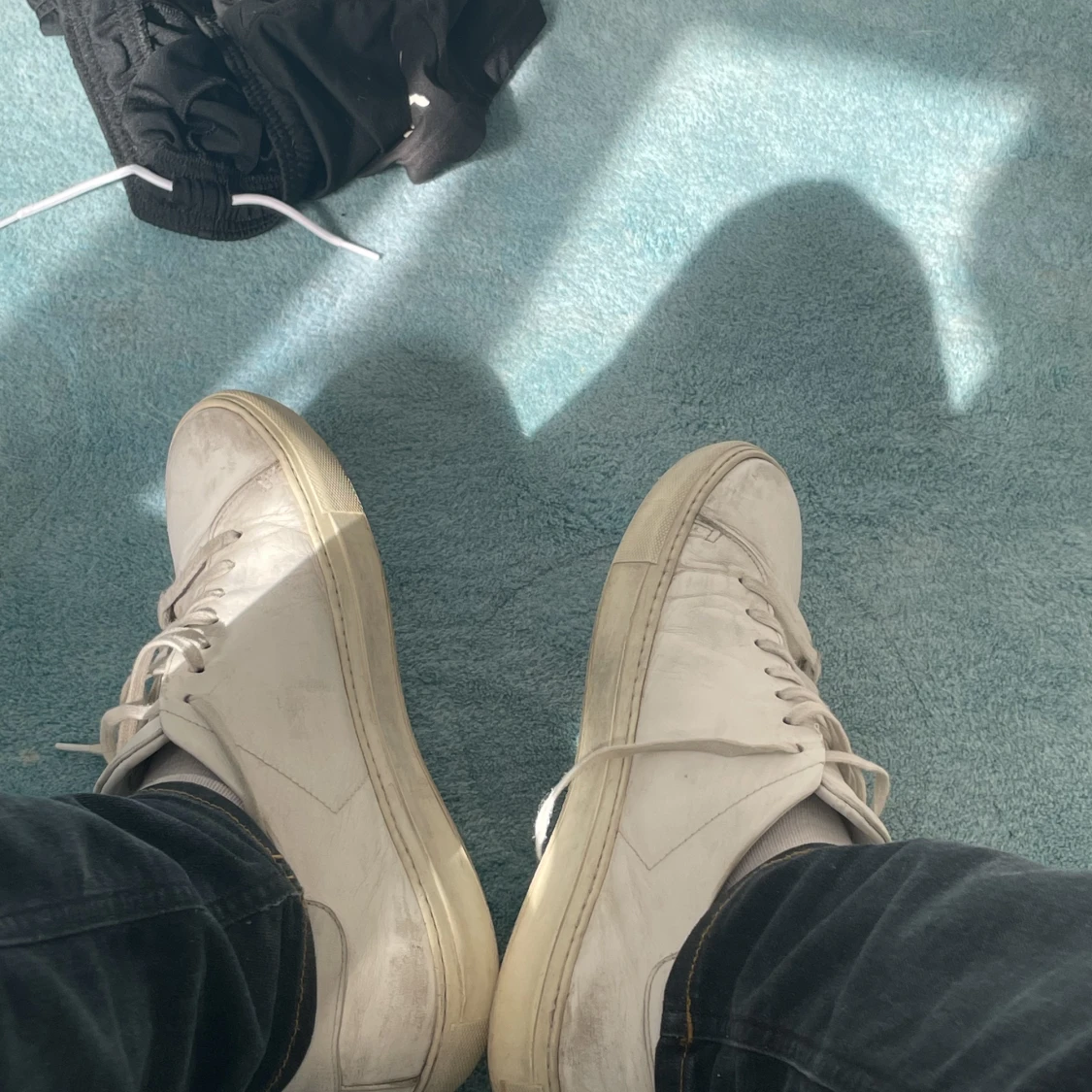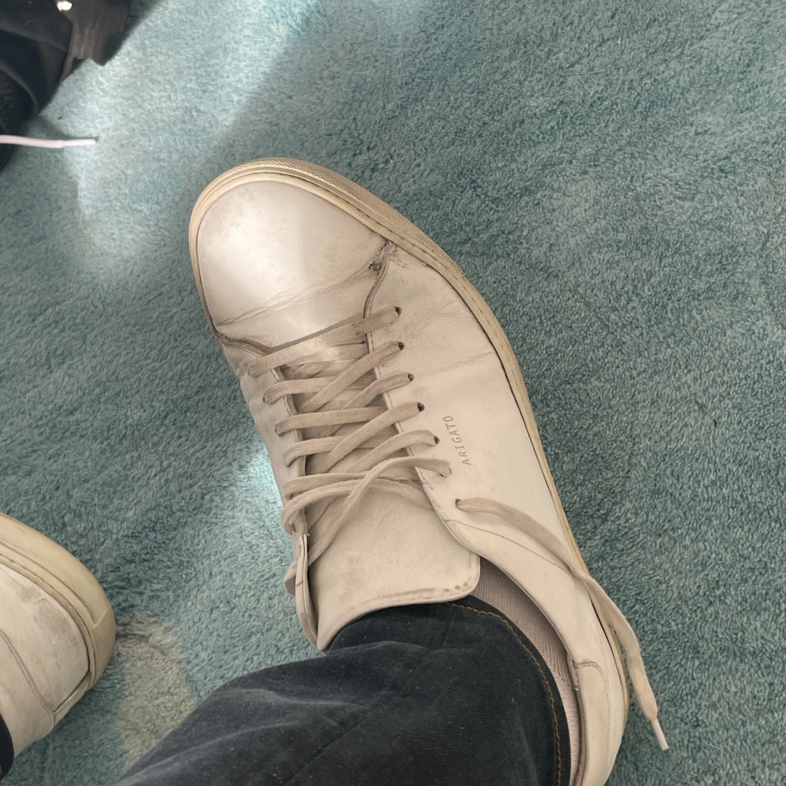 Tjo säljer dessa arigato skor, de är storlek 46. Skorna har en defekt på främre delen där med ett lågt pris. Det är herr skor.
