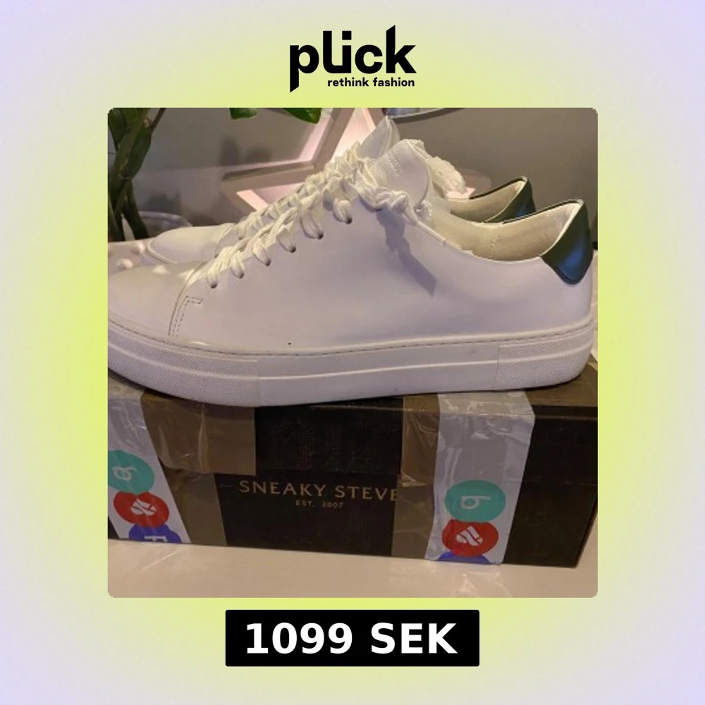 Stilrena vita sneakers från Sneaky Steve. Köpt för 1700 och har bara används på min bal men. Dom är som nya inge smuts eller defekter. Jag Säljer För att dom kändes lite stora.
