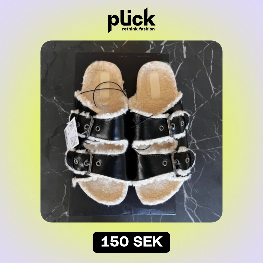 Tofflor från HM i storlek 39. De är helt nya och aldrig använda. Ludd inuti och skinn på utsidan. Mjuka och sköna💕 Nypris: 379kr