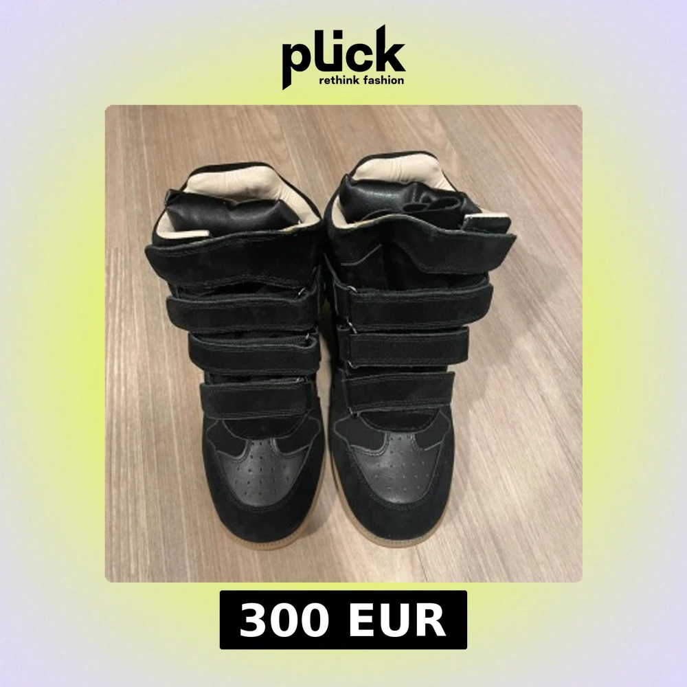 Svarta höga sneakers från Isabel Marant med flera kardborreband och detaljer i mocka och skinn. Skorna har en rund tå, platt sula i gummi och vadderad insida i beige. Perfekt för dig som gillar statement-skor med cool design.