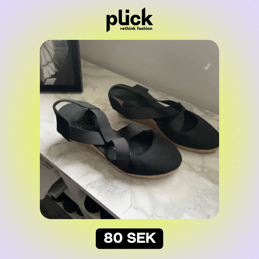 Supersköna skor med kilklack. 7 cm höga i storlek 41. Resårband som korsar över foten.
