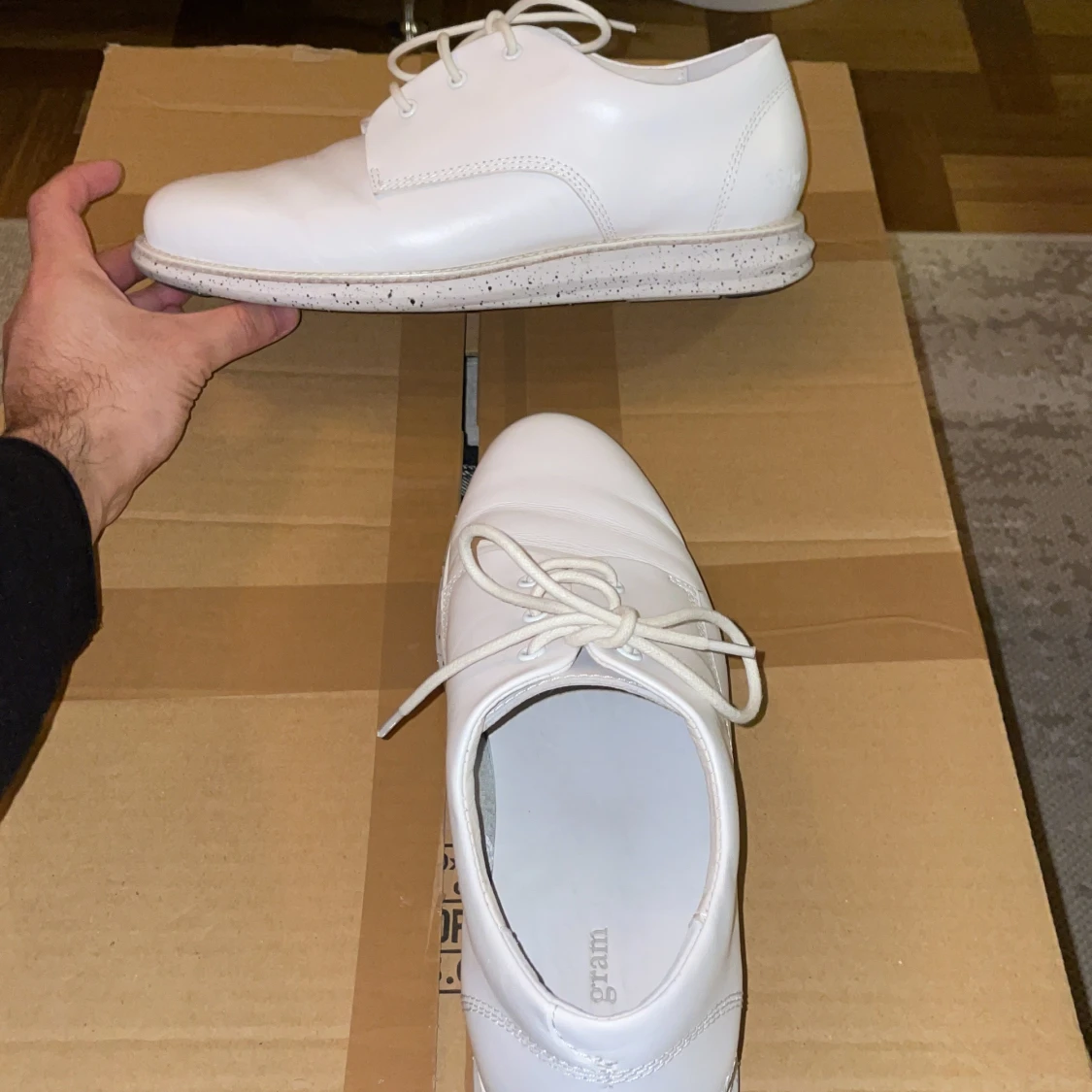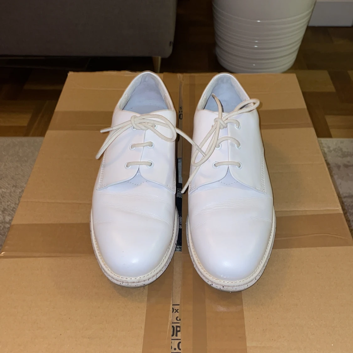 Gram skor i vitt läder använda vid fåtal tillfällen förvarade med skoblock för att bevara form. Nypris ca 1800kr