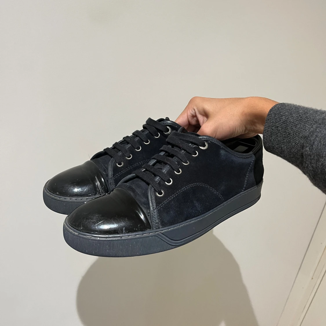 Säljer ett par helsvarta lanvins uk7 i använt skick. Både sulan och mockan har tecken på användning men är i övrigt i bra skick. Det ända tråkiga med skorna är att sömnen vid sulan har börjat släppa lite på högra skorn, men det går nog lätt att fixa om man vet hur man gör. Inget OG medföljer Hör av er vid minsta funderingar!