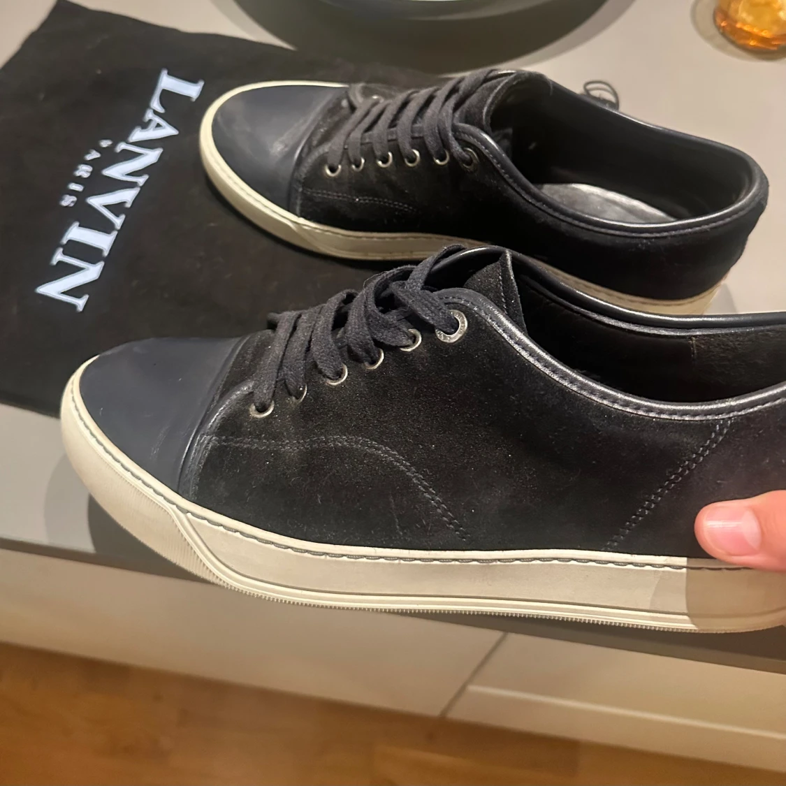 Säljer mörkblå Lanvins i 9/10 skick. Lite smuts på cap toen men i övrigt defekt fria. Skorna är stl UK 8 och passar som svenska 42/43or. Nypris: 4999 kr Hör av dig om du har några funderingar! Dustbag ingår.