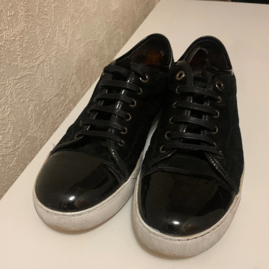 Säljs i befintligt skick, inga hål som går helt igenom skon. Uk 10 motsvarar 44-45. Skick 8/10
