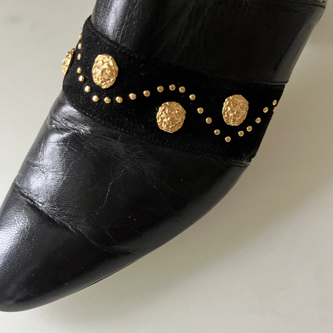 Authentic leather mules from Lola Shoes. Gorgeous lion details in gold. As seen on photos; barely used. Made in Spain.