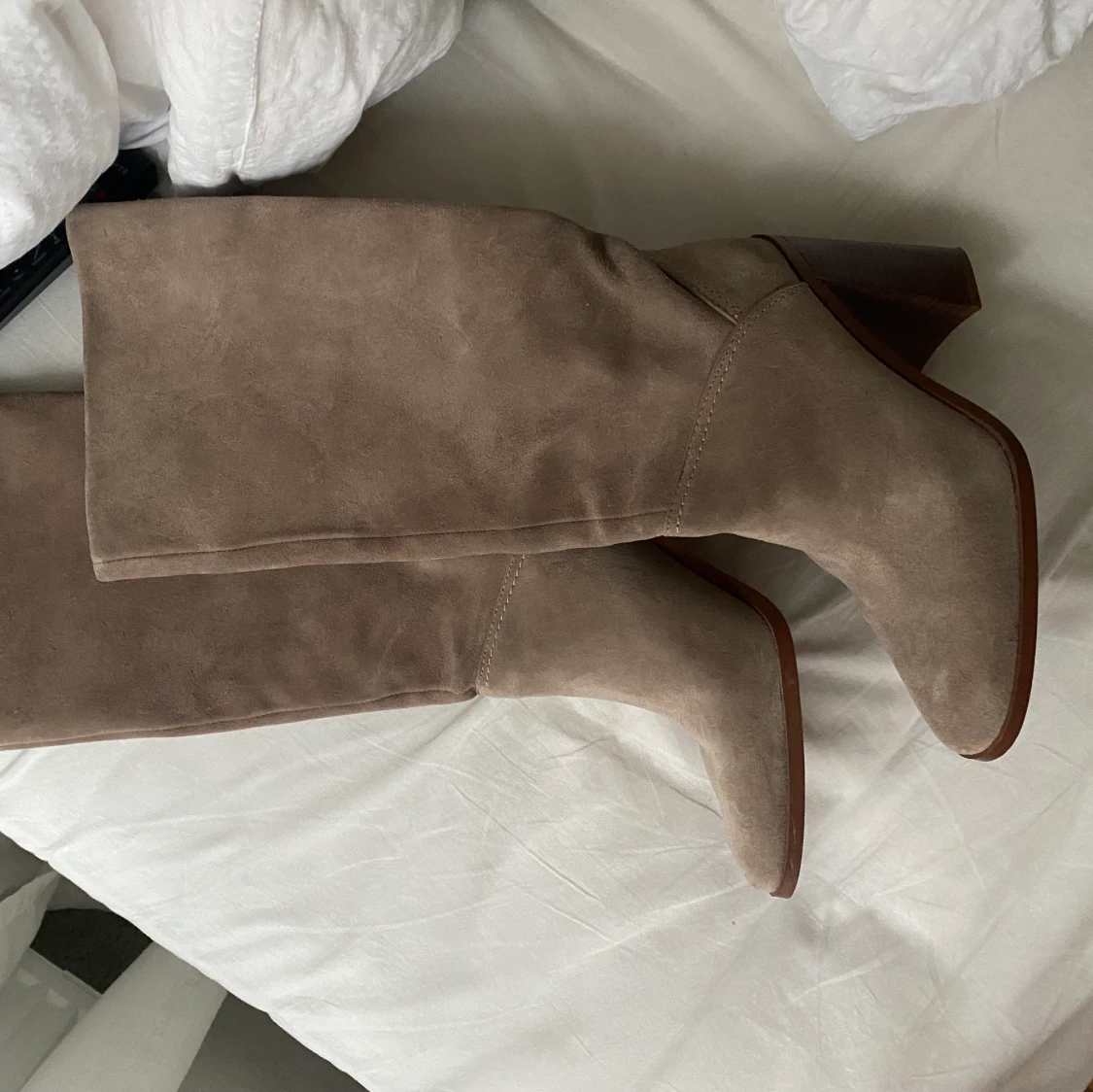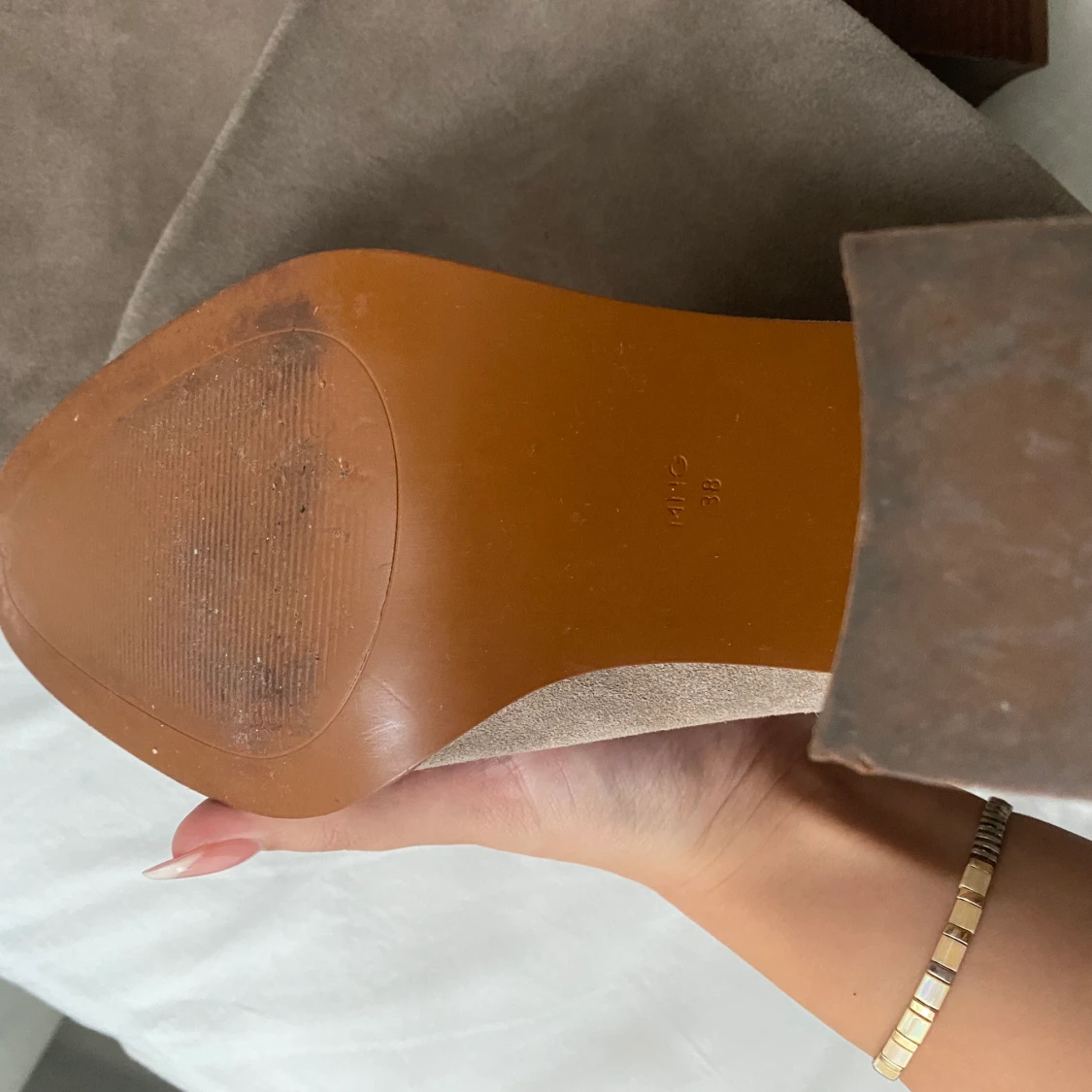 Snyggaste mocka stövlar från mango, helt slutsålda överallt. Enbart intressekoll. Äkta beige mocka med en mörkbrun sula och klack. Använda 1 gång så som nya. Nypris var 1600 kr, säljer vid bra bud!. 💕💕