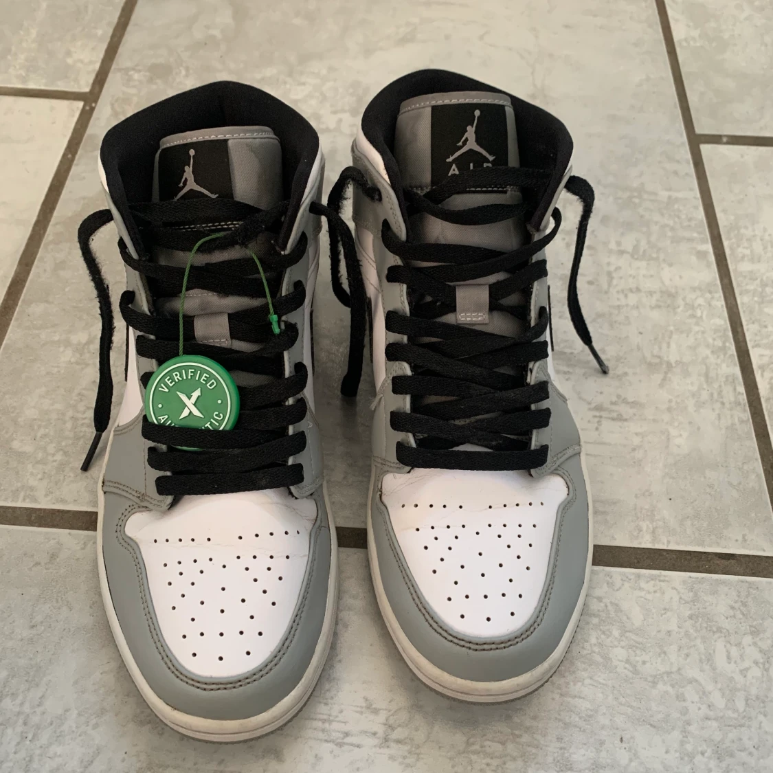 Säljer nu mina Air Jordan 1 mid i färgen light smoke grey, då de inte längre kommer till så mycket användning. De står att de är i eu storlek 42 men jag som har 40 i skor vanligtvis har använt de utan problem. Skorna är även unisex. De är i gott skick skulle säga 7/10 och är köpta på stockx som man kan se på taggen vilket visar på att de är äkta. Har tyvärr tappat bort boxen men ska försöka hitta den. De är köpta för ca 3000 kr💖