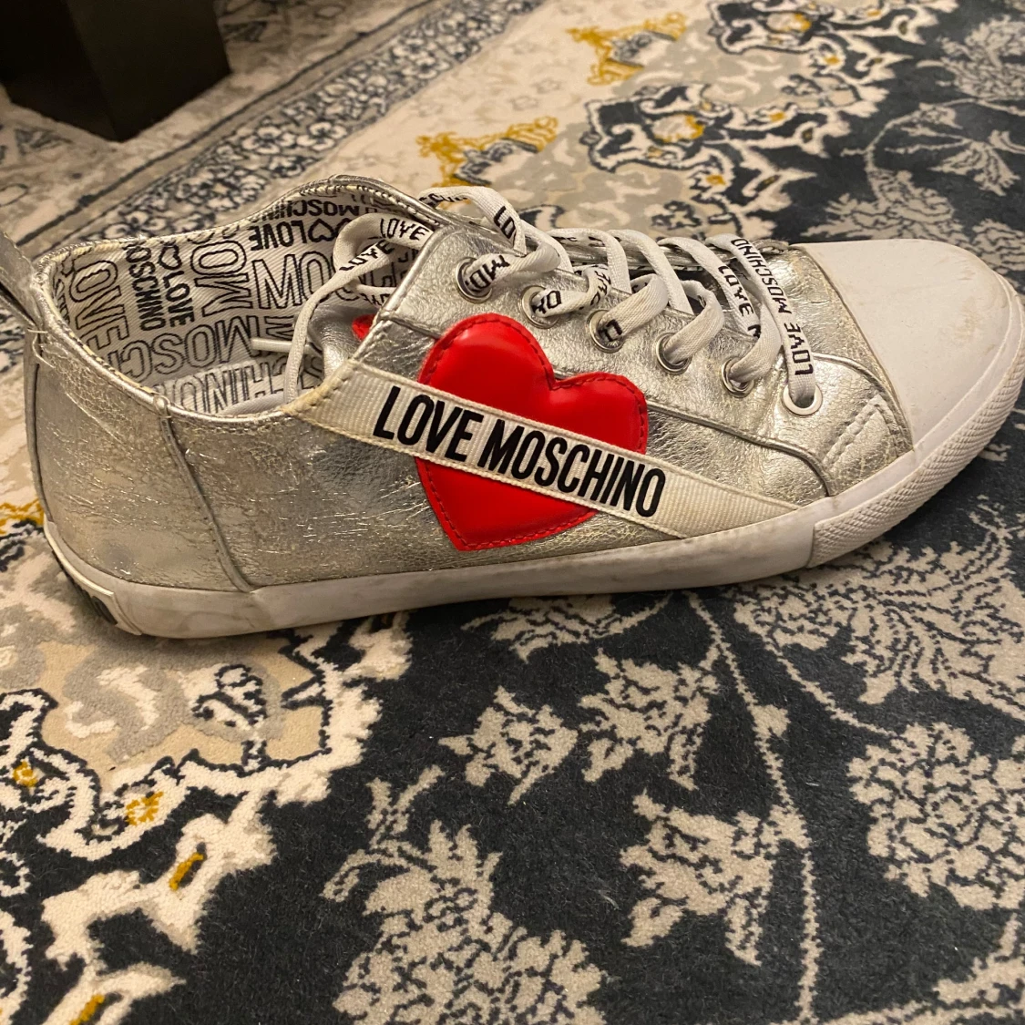 Säljer mina skitsnygga Moschino skor. De är använda men fortfarande i bra skick, behöver bara tvättas. Skriv för mer bilder💕