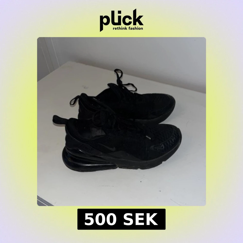 Nike Air Max 270 sneakers i helsvart färg med mesh-överdel och synlig Air-enhet i hälen. Snygg sportig look med rund tå, snörning och platt sula. Perfekt för dig som gillar streetstyle och vill ha bekväma skor med cool design.