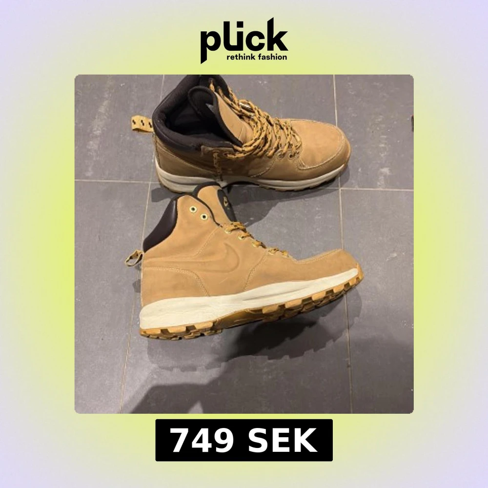 Nike Manoa boots i beige skinn med robust gummisula och snörning. Skorna har högt skaft, mörkbrunt foder och detaljer i guld på öglorna. Perfekta för höst och vinter med slitstark mocka och grovt mönstrad sula för extra grepp. Nypris 1249kr