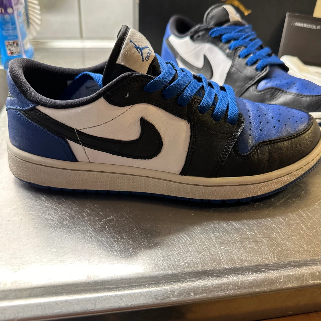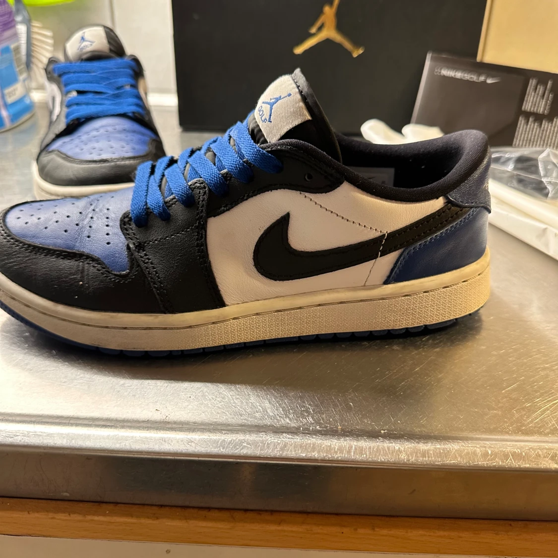 Tjena, säljer ett par feta Jordan 1 low golf till ett sjukt pris! Finns en liten defekt på ena skon. Utöver det fungerar dem felfritt med minimal heeldrag. Digitaltkvitto finns, vid fler bilder eller funderingar så är det bara och höra av dig //Jerra