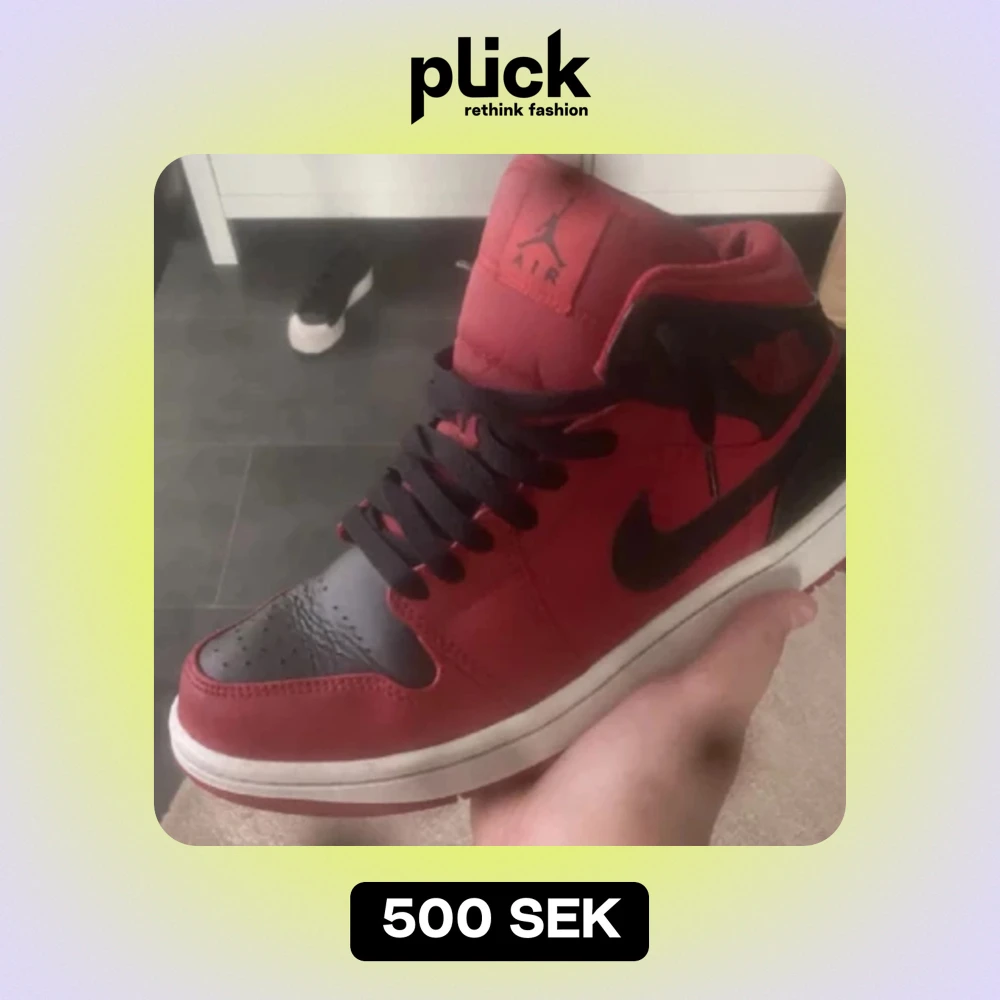 Säljer ett par snygga röda Nike Air Jordans i storlek 40. Skorna har en klassisk design med svart snörning och den ikoniska Nike-loggan på sidan. Perfekta för både vardag och fest! Skick 7 av 10