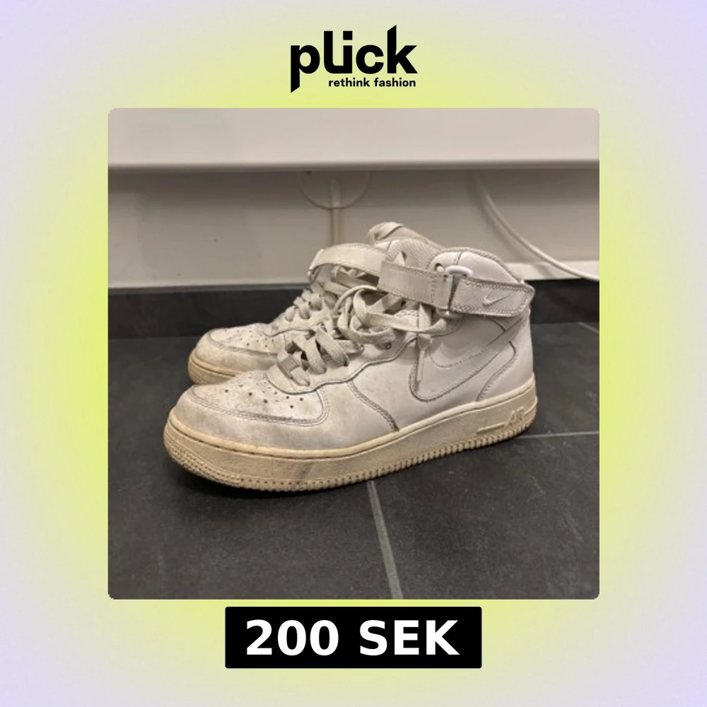 Airforce 1 mids strl 40. Väldigt bra skick endast lite smutsiga men går bort snabbt. Sulan är lite mer off white i färgen men framstår som mer gul än vad den är på bilderna.