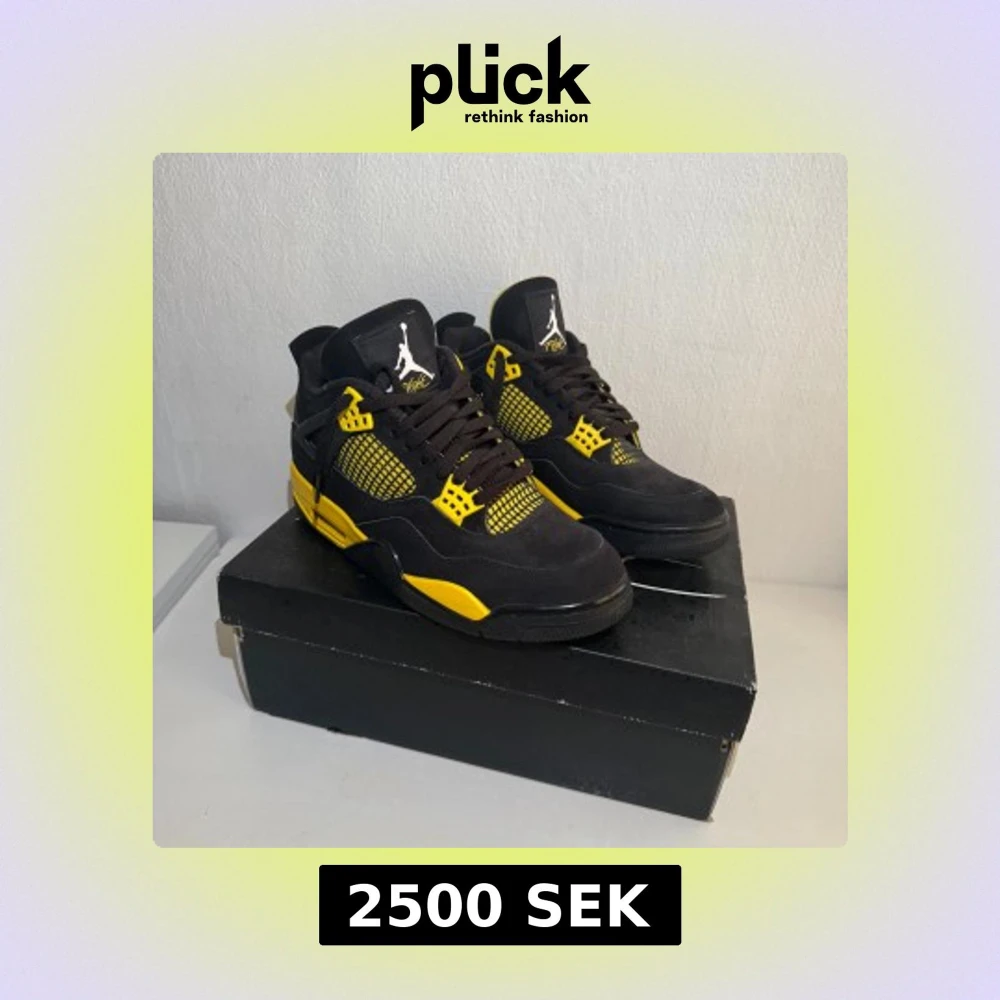 Air Jordan 4 Retro “Thunder”, storlek 43 (EU). 100% äkta och endast använda en gång – i nära nyskick. Klassisk svart och gul färgkombination, ikonisk design och bekväm passform. Levereras med originalkartong. Perfekta för samlare eller sneakersfantaster som söker stil och kvalitet. Inga skador, fläckar eller slitage – sulan är ren. Säljes p.g.a. platsbrist. Skickas spårbart eller möts upp. Först till kvarn! Kvitto finns bara att skriva!!