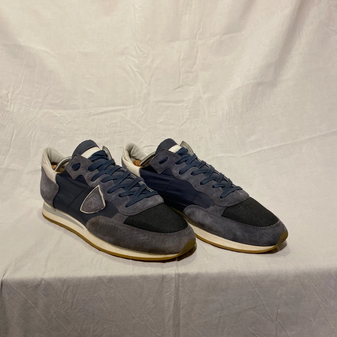 Navyblå trainers från Philip Modell i storlek 45 men funkar för 44. Skorna har fina mockadetaljer och snörning. Skorna är använda några gånger men det finns knappast några märken av tidigare användning på mockat. Perfekta för en avslappnad stil, men funkar också helt perfekt om du vill känna dig lite mer uppklädd. Om du undrar något om skorna är det bara att fråga på, svara så snabbt jag kan😁🙌