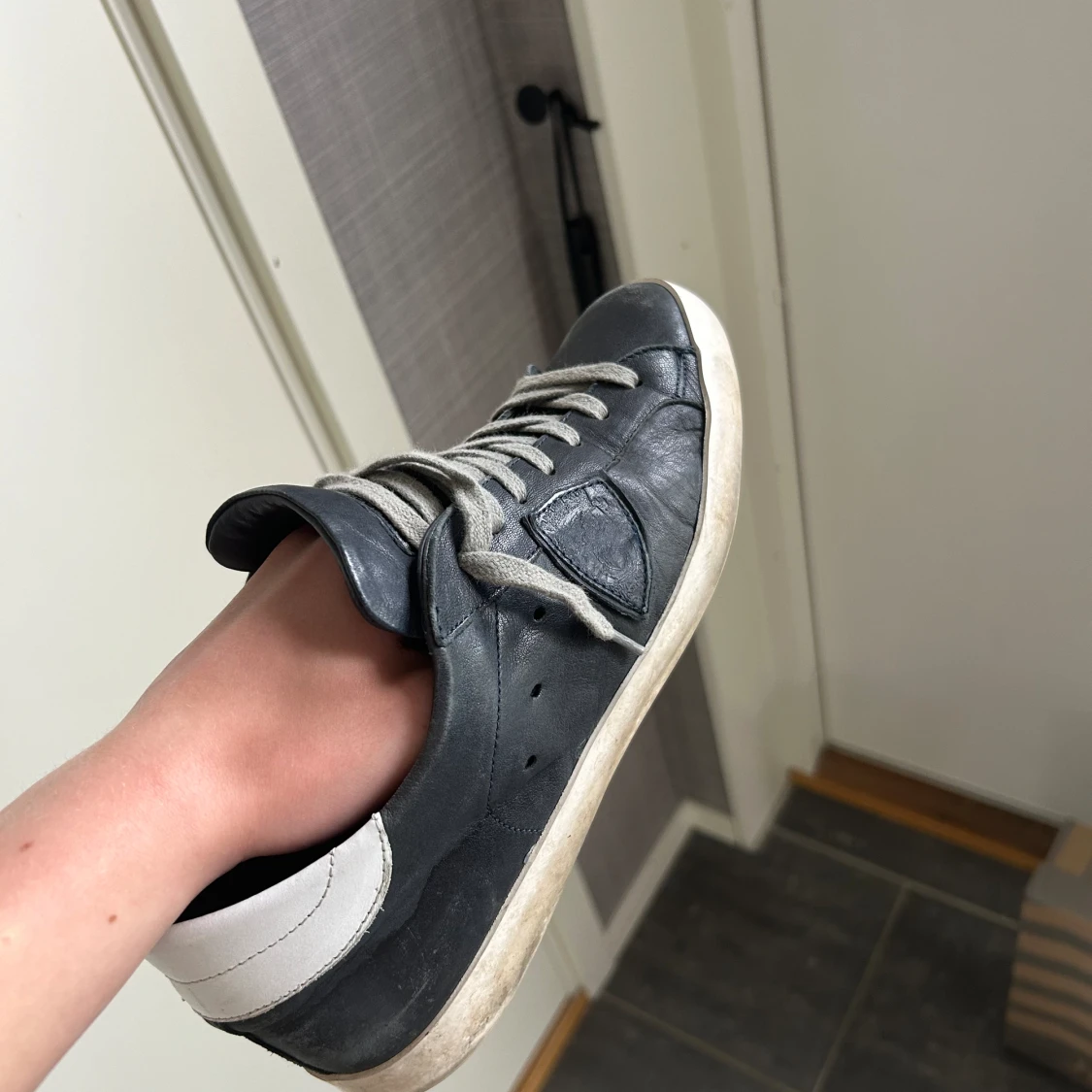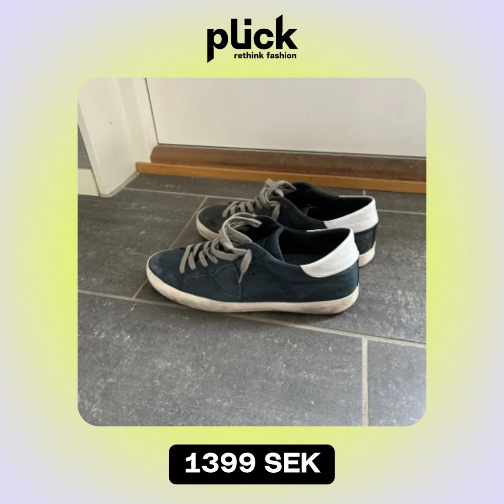 Ett par populära Philippe model i marinblå färg. Strl 41 men sitter större. Bra skick, ganska använda, lite slitna under annars ett bra helhetsintryck, har otroligt mycket kvar att ge. Inget OG, men självklart äkta. Fler bilder skickas gärna. Mvh VKO