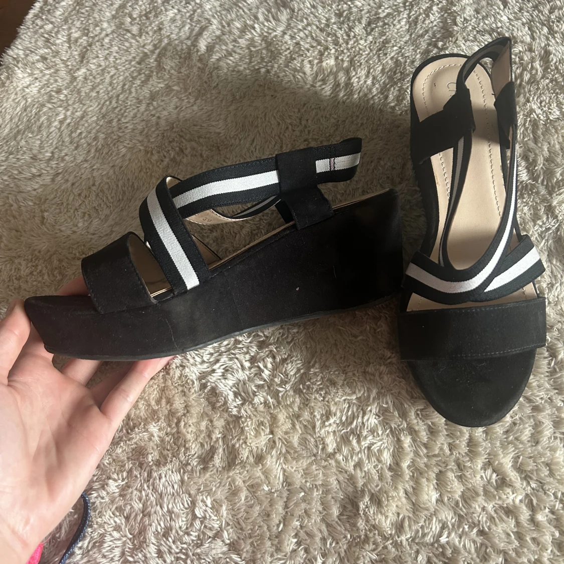 Supersköna kilklackar! Passar verkligen till alla outfits och ger det lilla extra!🌸🎀 Använda max 10 gånger, storlek 39.