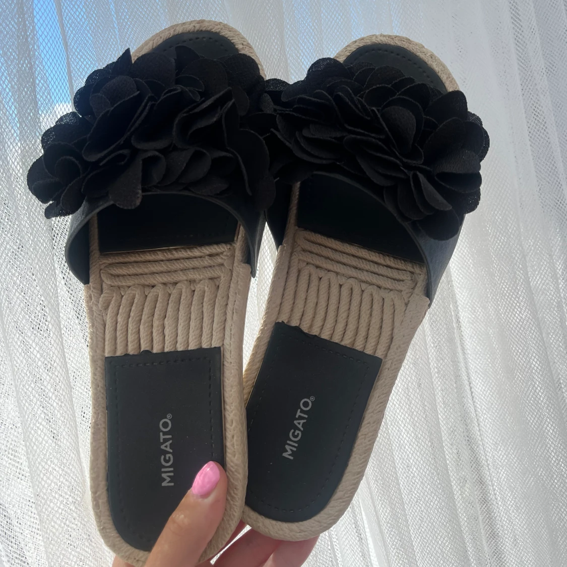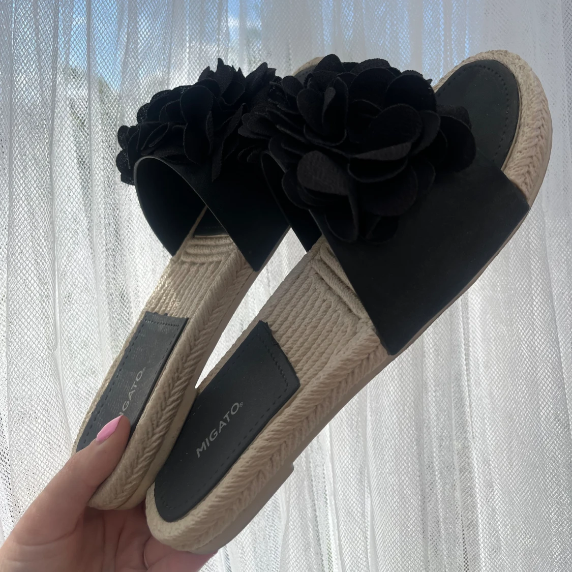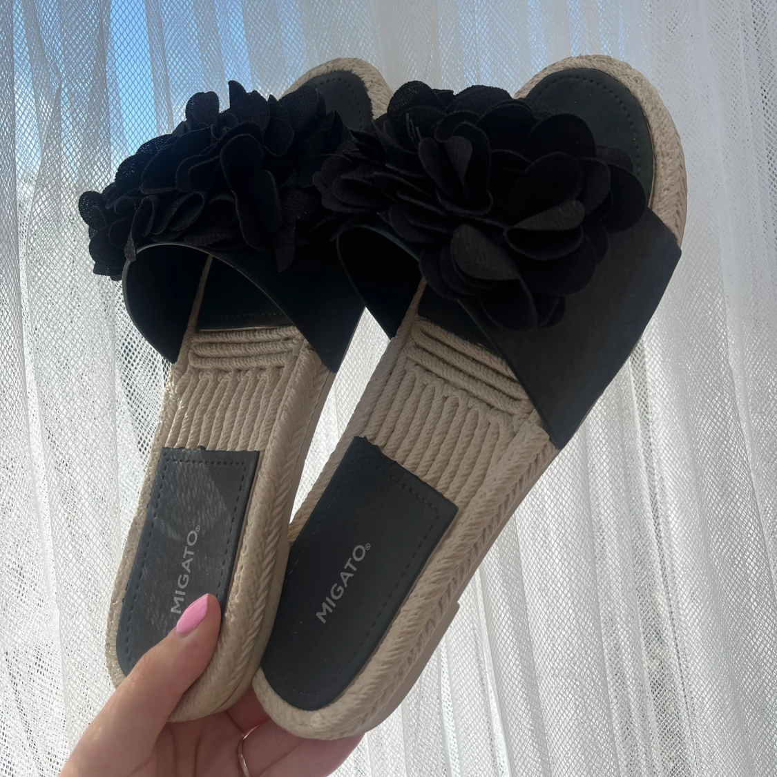 Suuuuperfina!! Tofflor med blomdetaljer🌸vill se om intresse finns annars kanske jag behåller dom själv. Köpta i Grekland