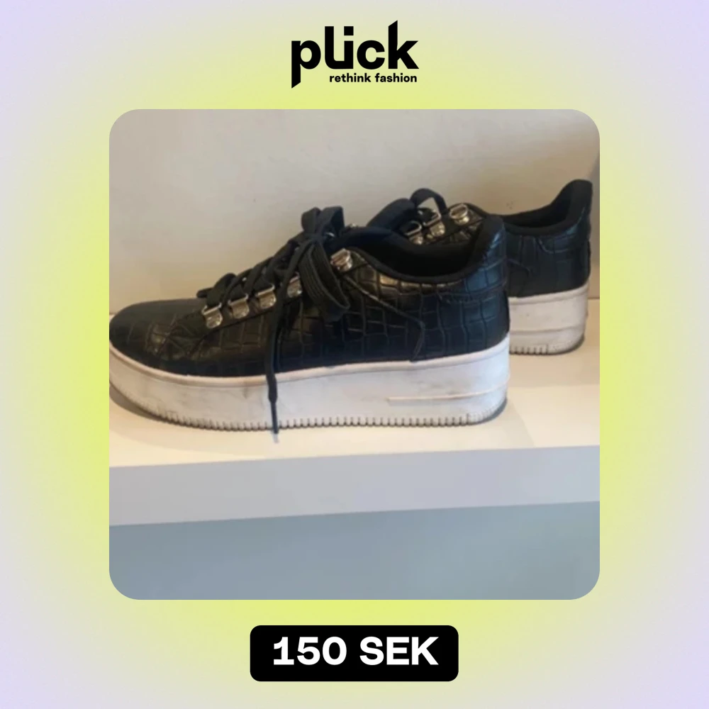 Svarta skinn sneakers med vit sula. Inte mycket använda alls.