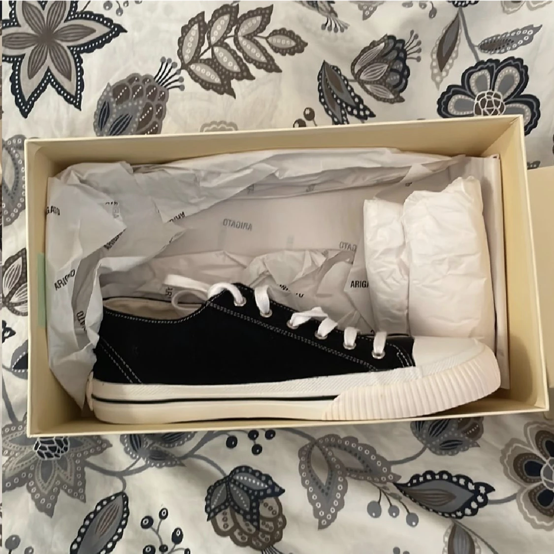 Ett par helt nya fräscha arigato skor aldrig använda. Nypris 1500. Säljes pga fel storlek. Tveka inte att höra av dig priset ej hugget i sten. Dustbag och box medföljer. Köpare står för frakt.