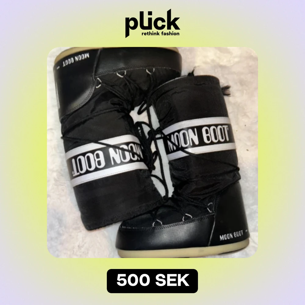 Säljer ett par snygga svart vita moonboots som är i bra skick har dock bara ett litet hål i sulan på ena moonboten syns på bild nummer 3 men annars är dom i jätte bra skick. Säljer pga av att dom inte kommer till användning .