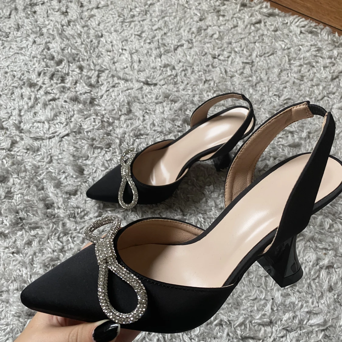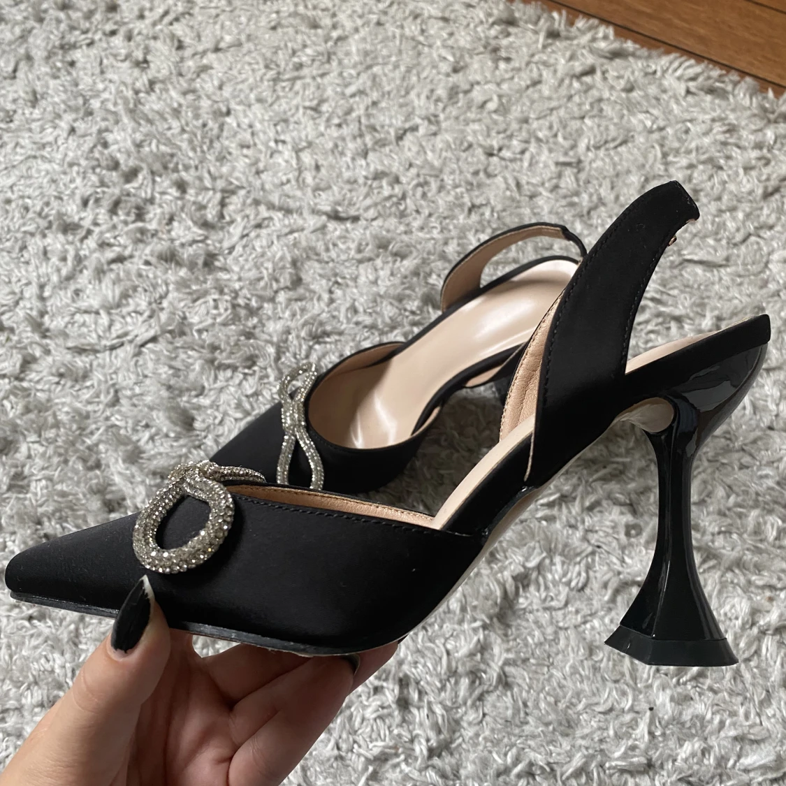 Så fina klackskor med glittrig rosett🖤 Använda en gång med ser precis ut som nya!