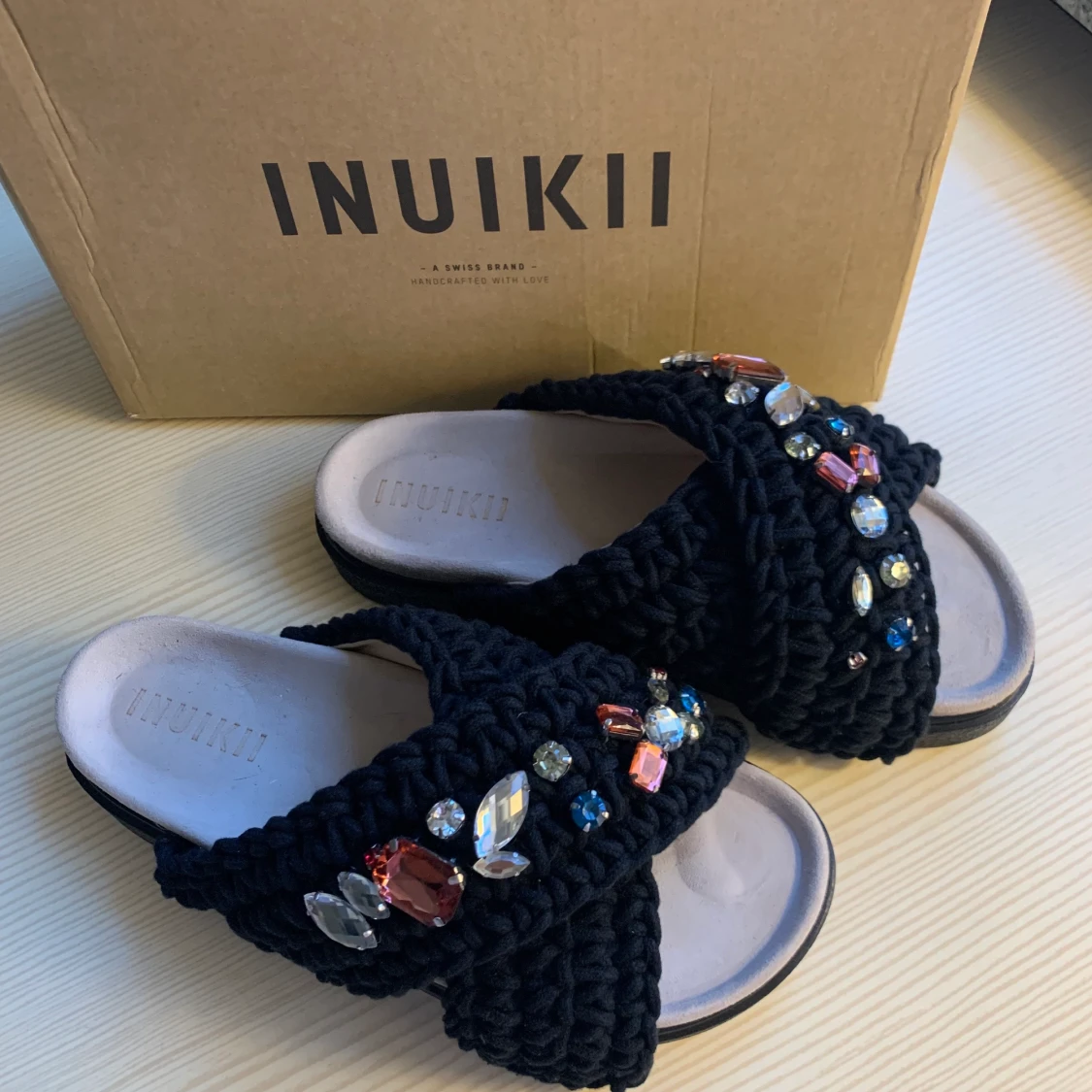 Super snygga inuikii tofflor som är slut nästan överallt i storlek 38! Köpte tyvärr fel storlek. Aldrig använda. Org pris 2100kr nypris 1500kr