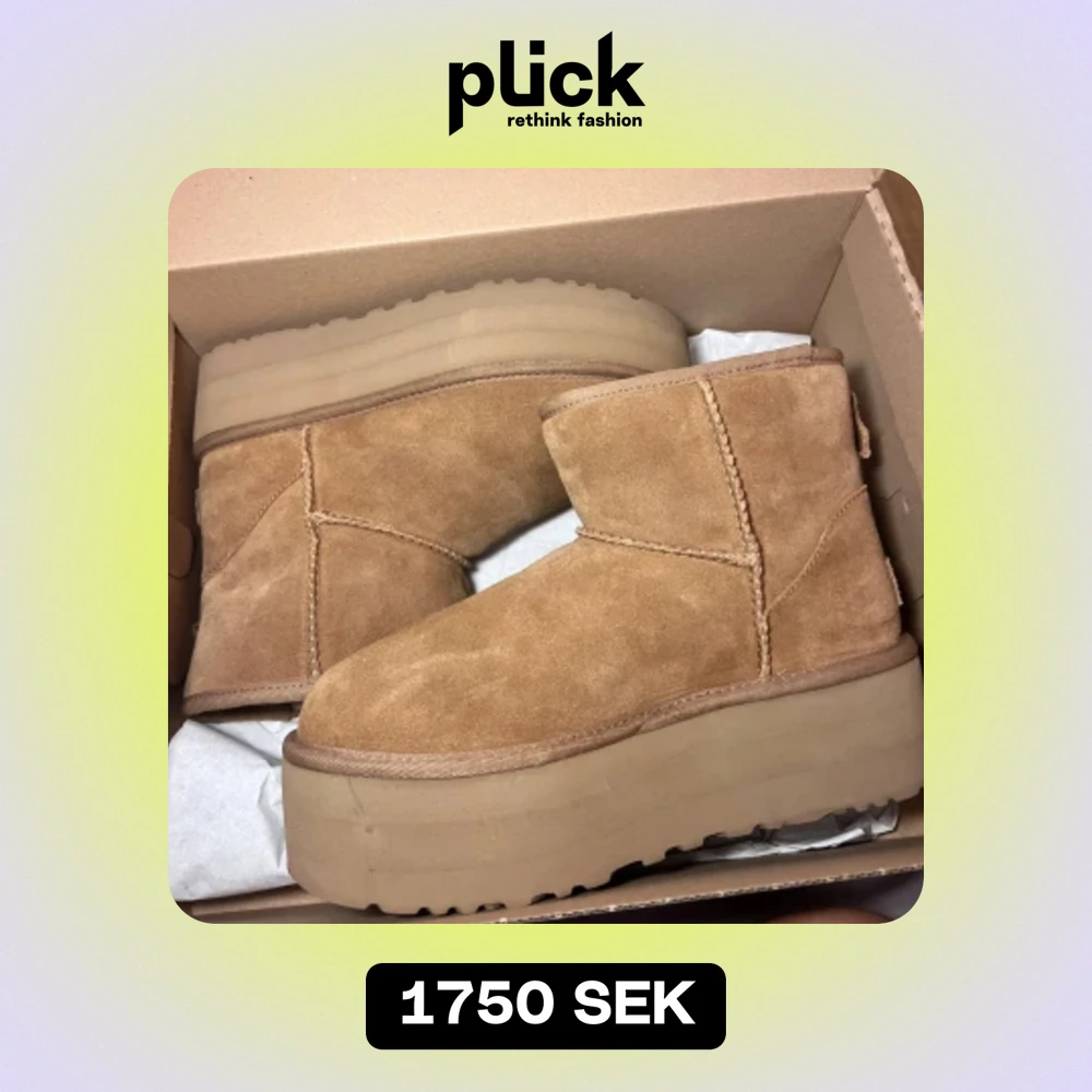 Säljer ett par UGG Classic Mini Platform stövletter i färgen chestnut. De är gjorda av mjuk mocka och har en rejäl platåsula som ger extra höjd och stil. Perfekta för höst och vinter, dessa boots är både snygga och bekväma. Ser väldigt ny 😘