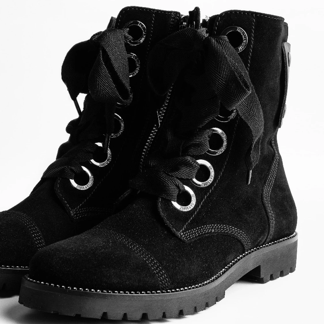 Högst bud vinner! Haft dessa i lite mer än ett år. Fått vara med på ett par utekvällar men annars stått stilla i garderoben. Säljs för tycker de kan komma till en person som har mer användning för dem. Är små defekter på skorna som där bak och en pärla är borta (syns på bild 1) sedan är det fläckiga men går bort med hjälp av en mocka borste. Skorna är köpta för över 4000 i Zadig butiken på Birger Jarlsgatan.