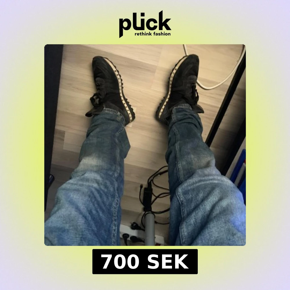Snygga svarta sneakers från Valentino med coola nitar runt sulan. Skorna har en robust design med snörning och en bekväm passform. Perfekta för att ge din outfit en edgy touch.