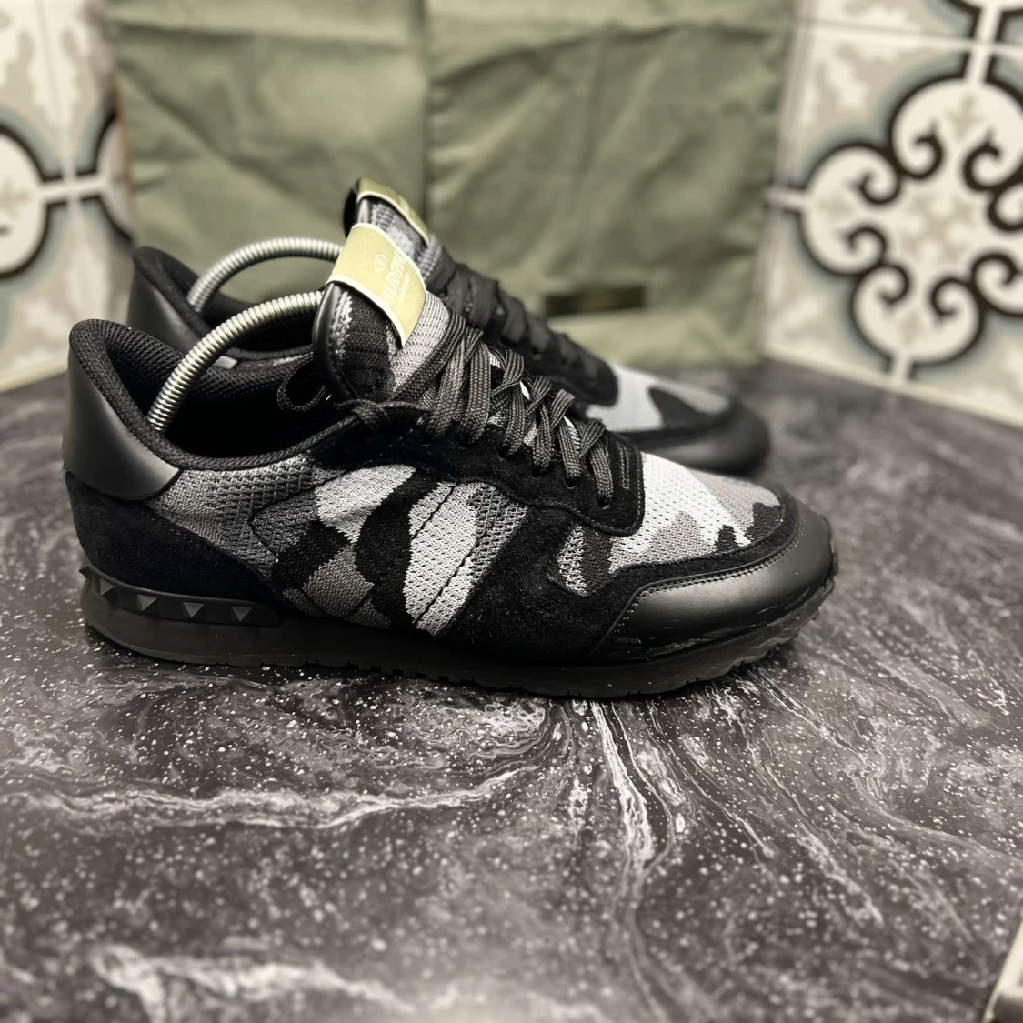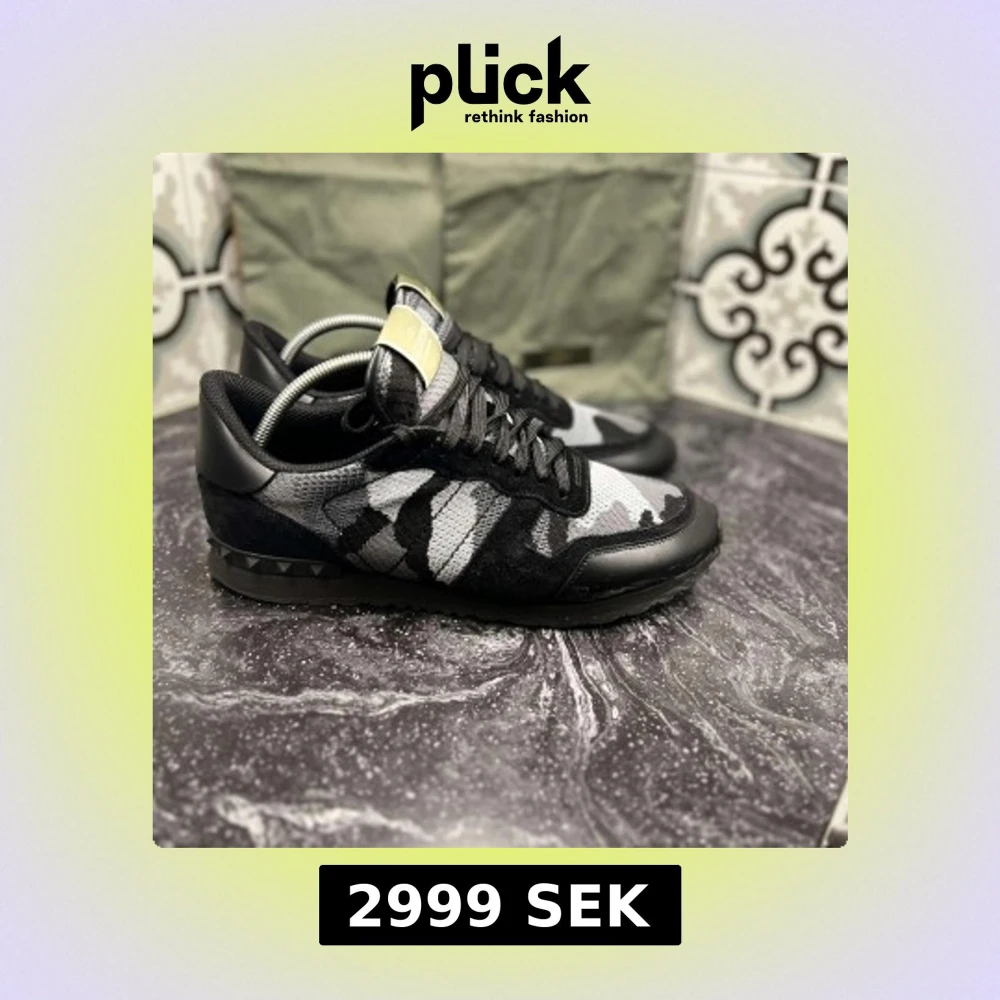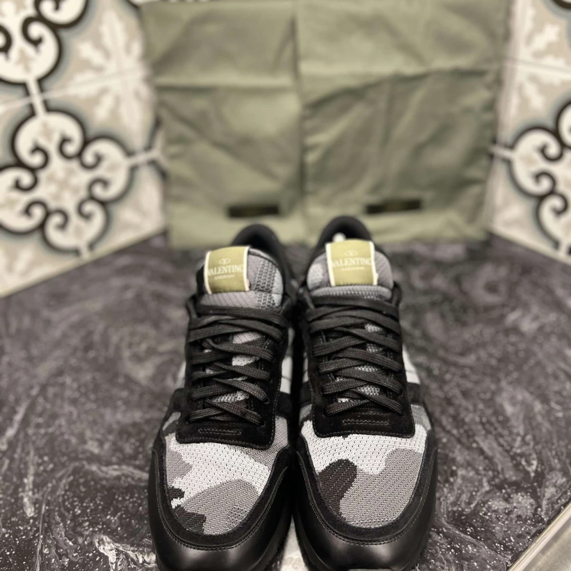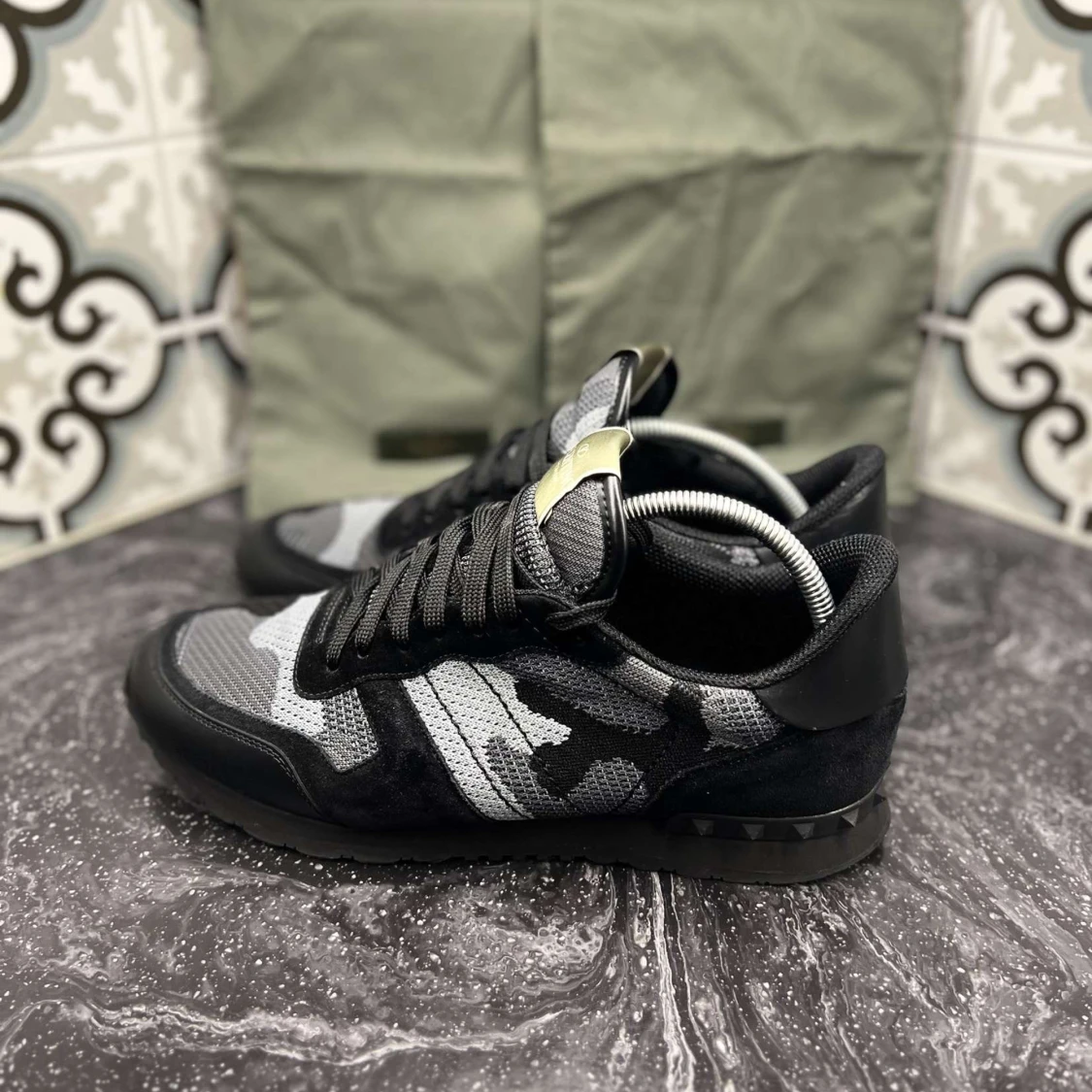 Snygga Valentino Rockrunner sneakers i svart och grått med ett coolt camouflage-mönster. Skorna har snörning och är dekorerade med nitar på sulan. Perfekta för vintern för endast 2999kr