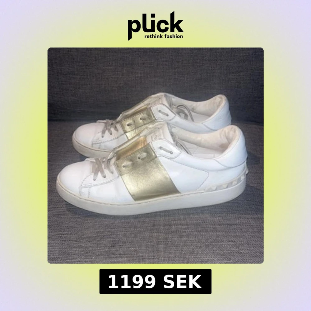 Snygga sneakers från Valentino Garavani i guld i storlek 40. Endast skor följer med. De är I bra skick. Hör av dig vid frågor!