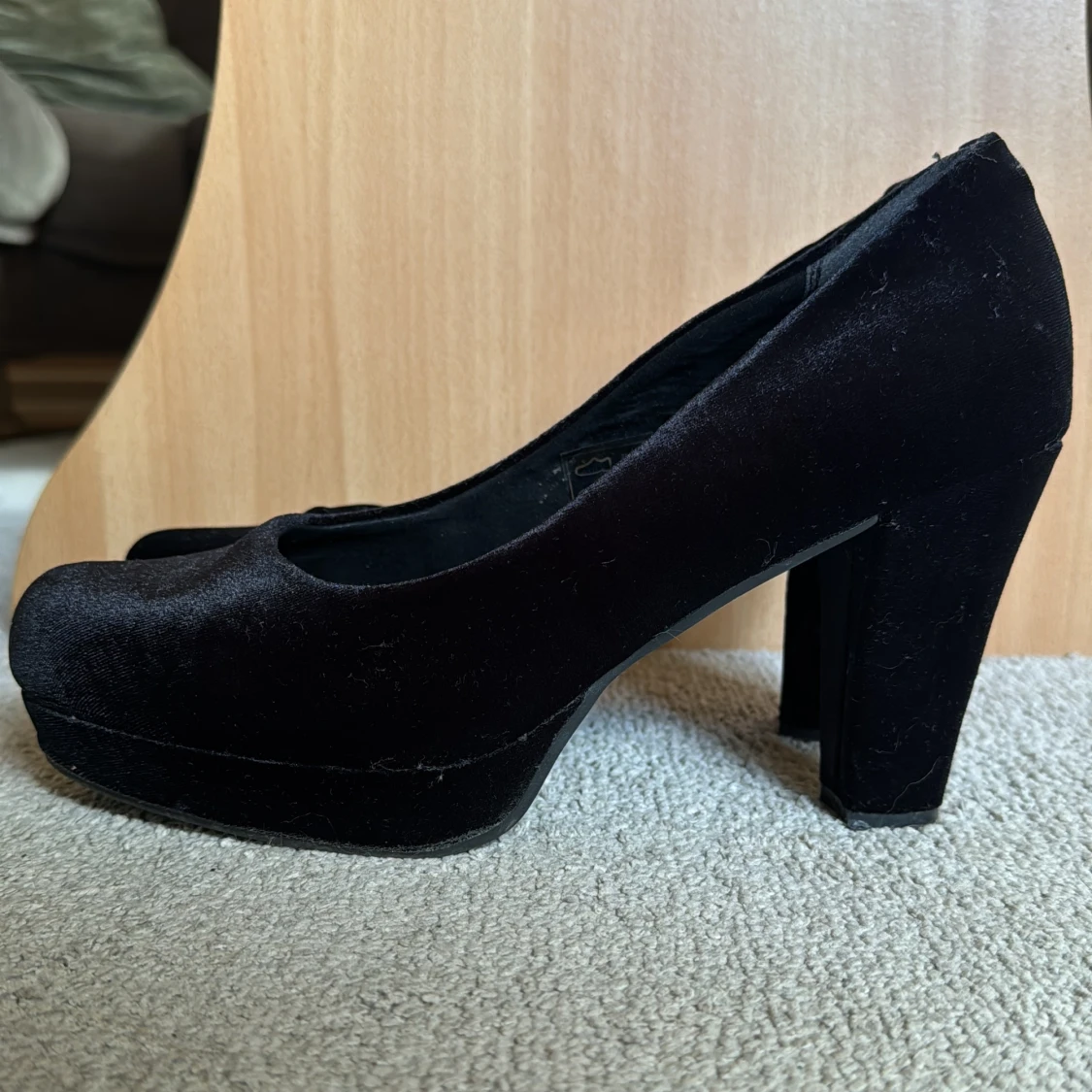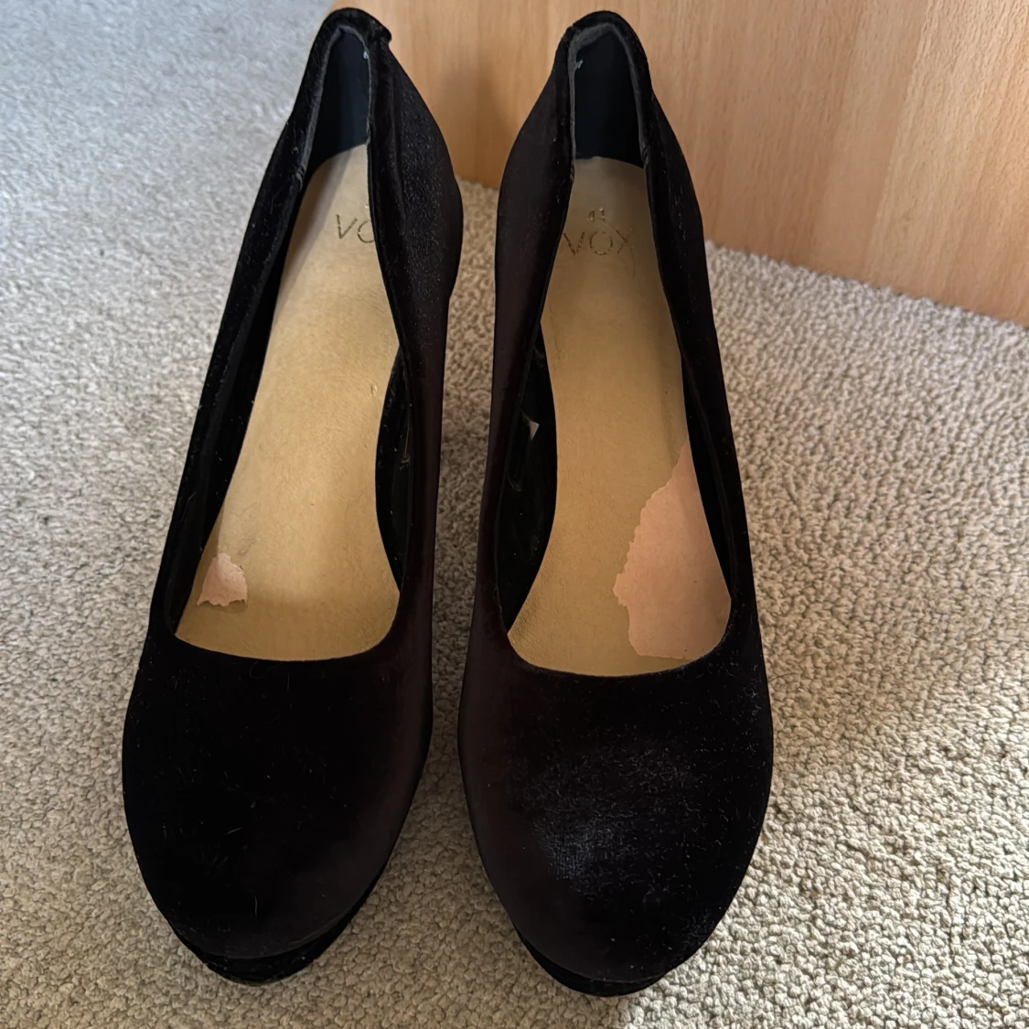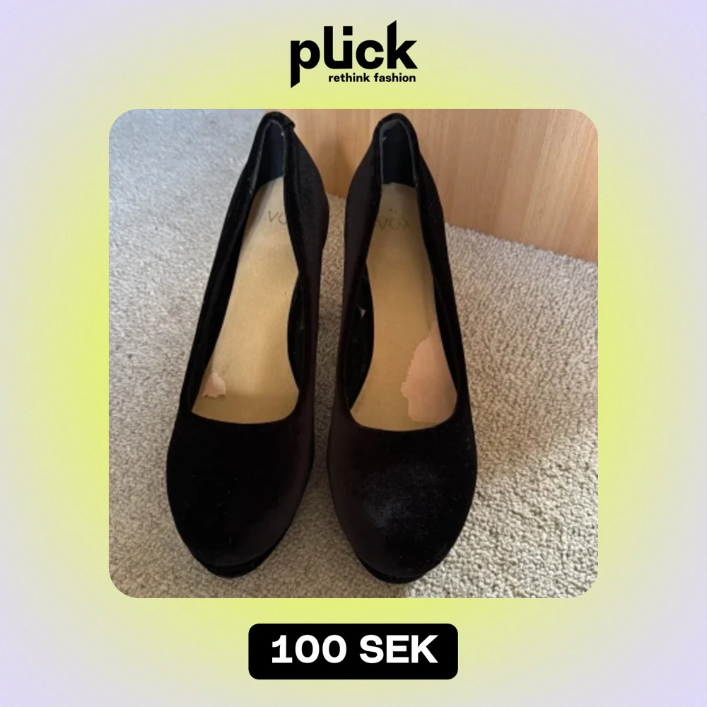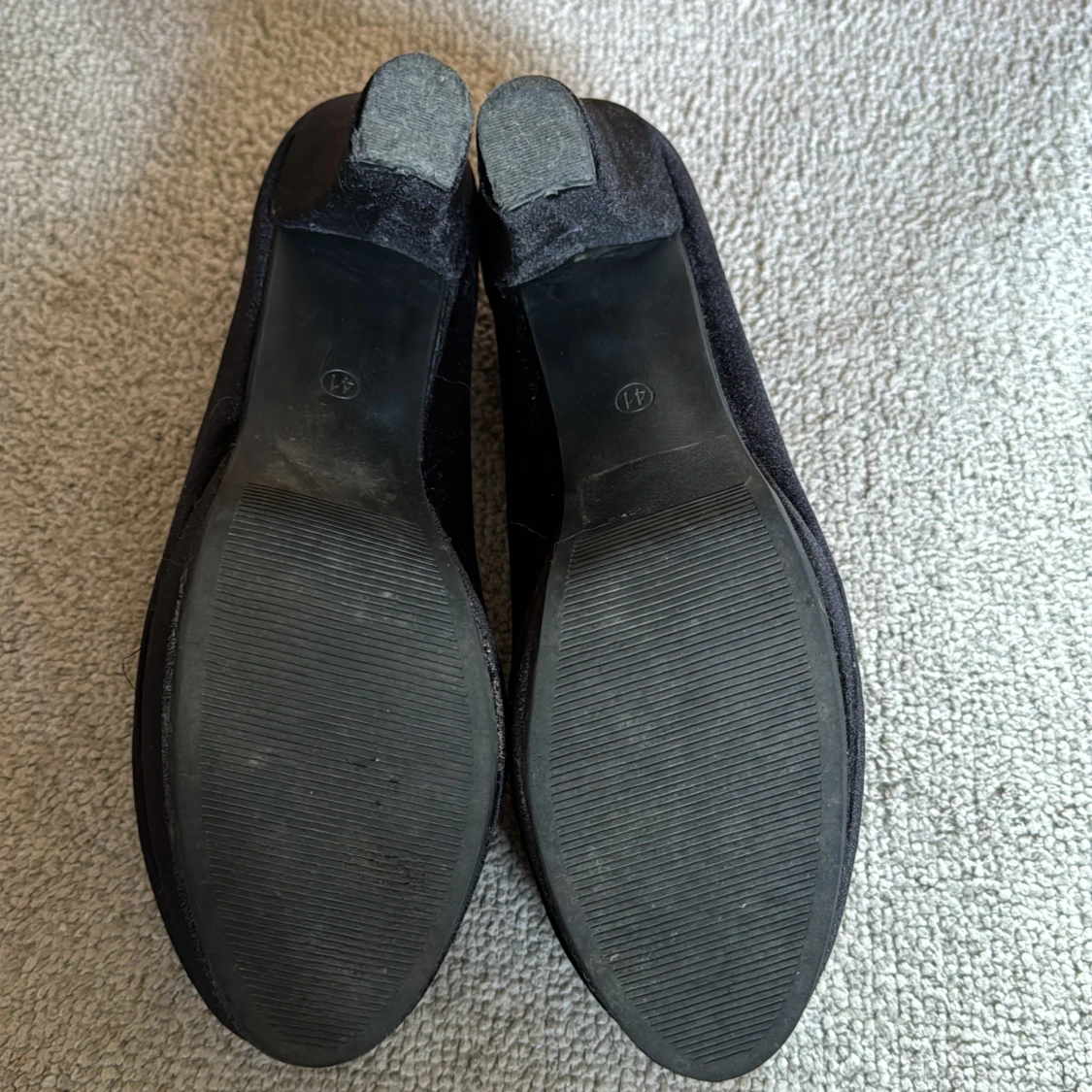 Storlek 41. Har använts en gång på bröllop. Hade silikon ilägg därav skadorna i sulan, är bara översta lagret som gått av och inget på sulan i sig som är sönder. I övrigt inget slitage. Är väldigt sköna men kommer inte till användning för mig.