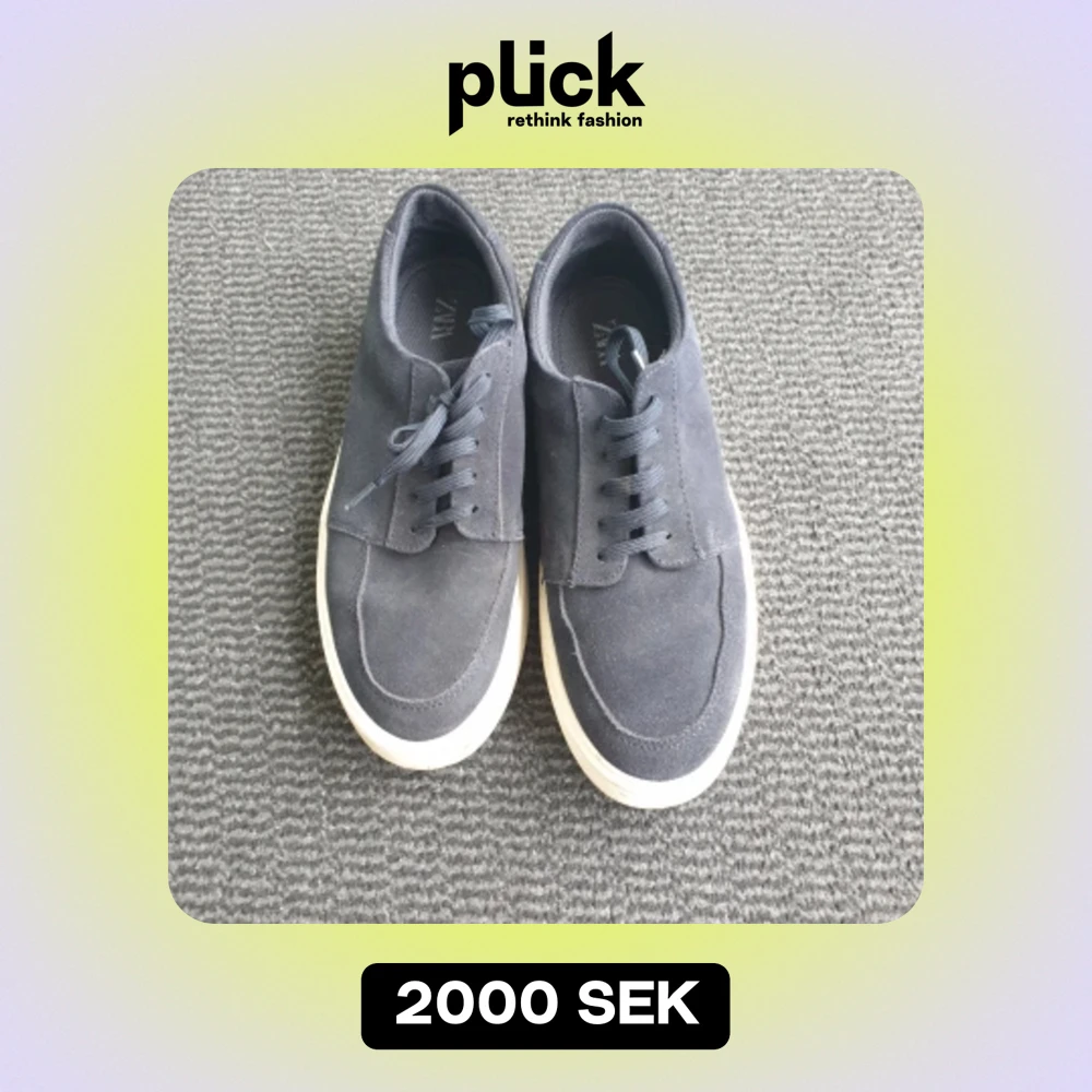 Skick 9/10, använt dom fåtal gånget så det är bara att skölja av det smutsiga, riktigt snygga mocka skor från zara i mörkblå färg, tveka inte att höra av er
