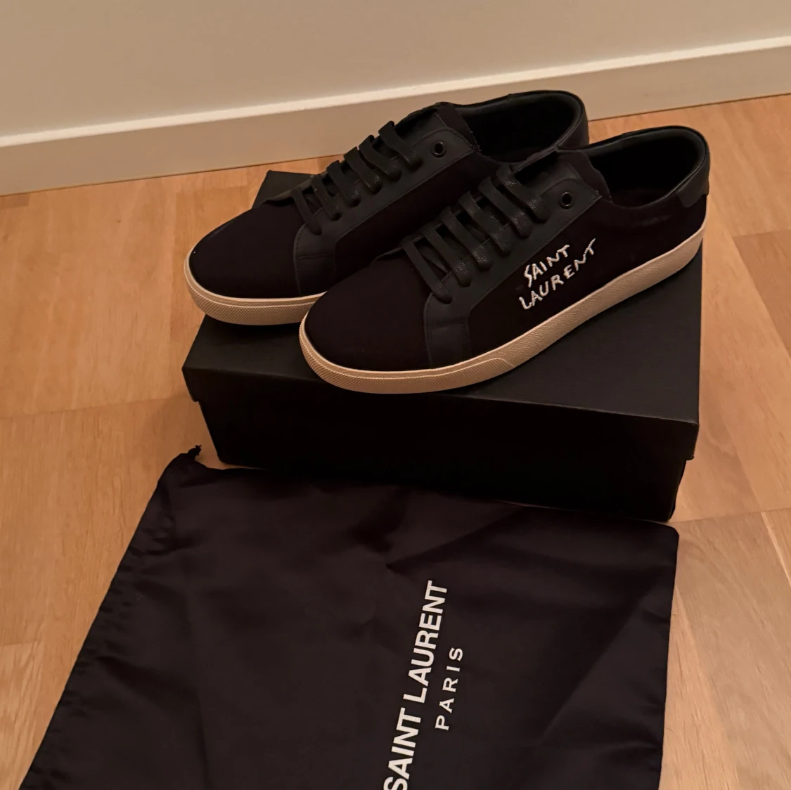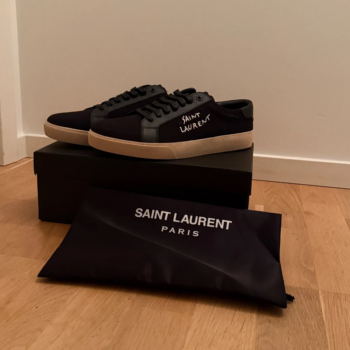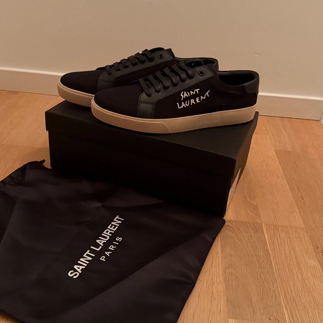 Snygga svarta skor från Saint Laurent perfekta för att klä upp sig men även vara casual. Det är bara att skriva ifall ni vill ha fler bilder