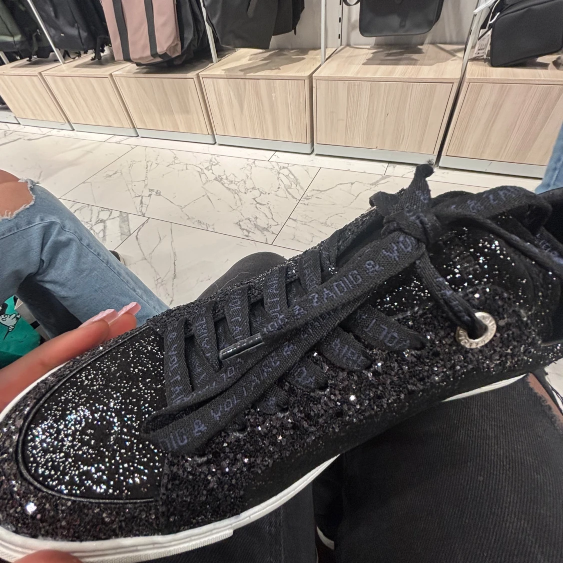 Säljer ett par svarta sneakers från Zadig & Voltaire med glittrig yta och svarta snören med logga. Köpta i butik för 4000kr i mars 2025, bra skick. Strlk 40 men passar mig som har strlk 39,5-40. Kom prov för bilder och frågor☺️❤️