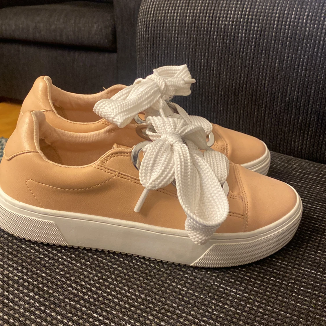 Jätte fina skor i bra skick Använda Max 5-7 gånger. PRIS KAN DISKUTERAS!!! Stora fina snören. Dom ser beige ut men Dome lite mer åt det rosa hållet
