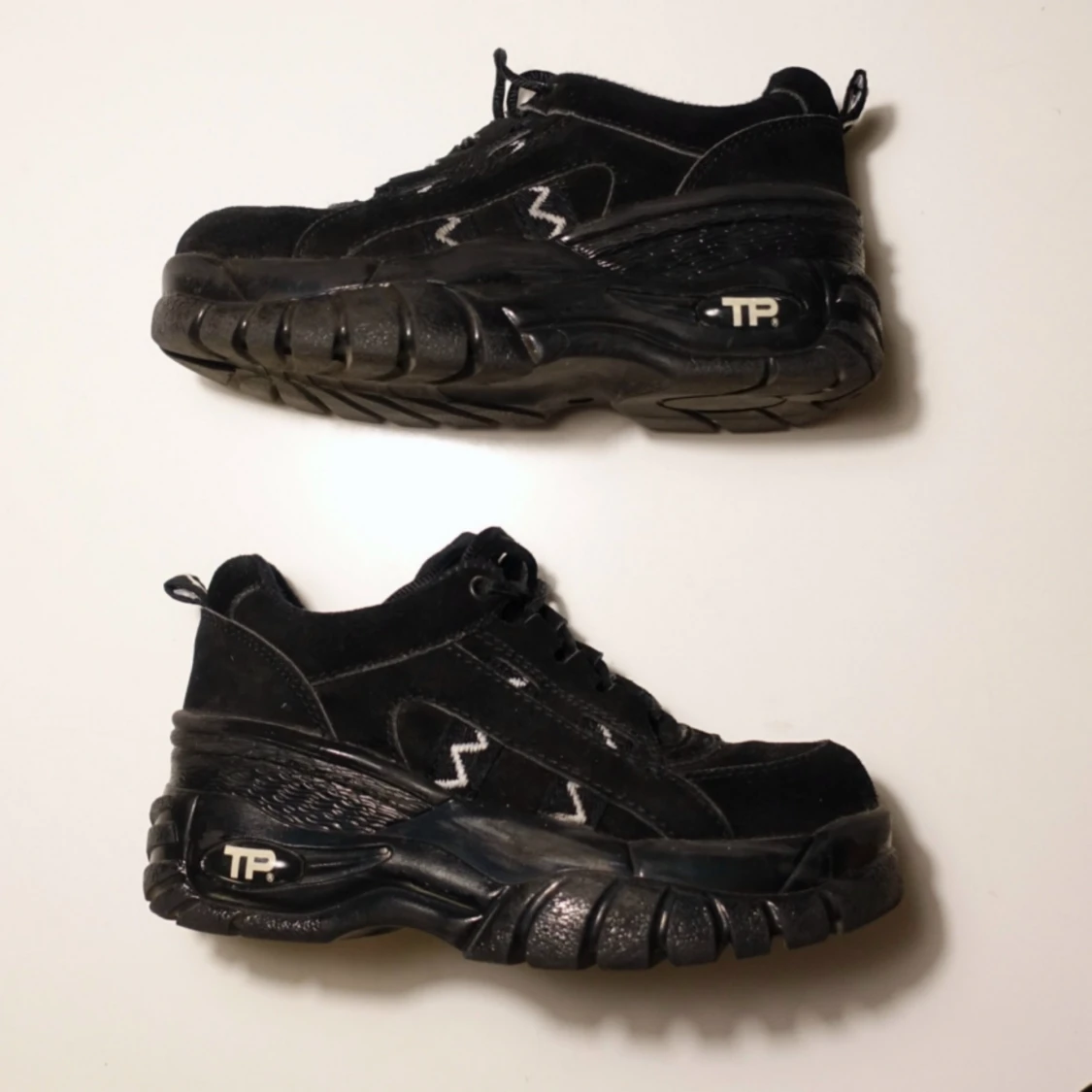 Svinsnygga chunky skor. Står storlek 39 under skon, passar mig med stlk 38/39 Köpta här på plick, men jag har aldrig använt dem. Linningen/tyget har släppt lite precis inuti på sulan vid hälen,men inget som känns eller stör. Pris kan diskuteras, möts helst upp i stockholm. 🖤