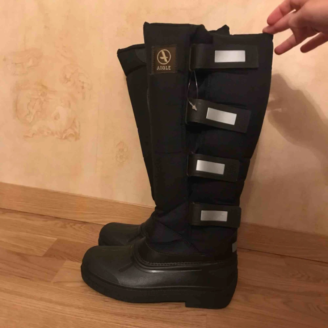 Helt nya Aigle kängor som är varmfodrade med reflexer i storlek 35. Möts upp i Ursvik, Sundbyberg eller T-Centralen