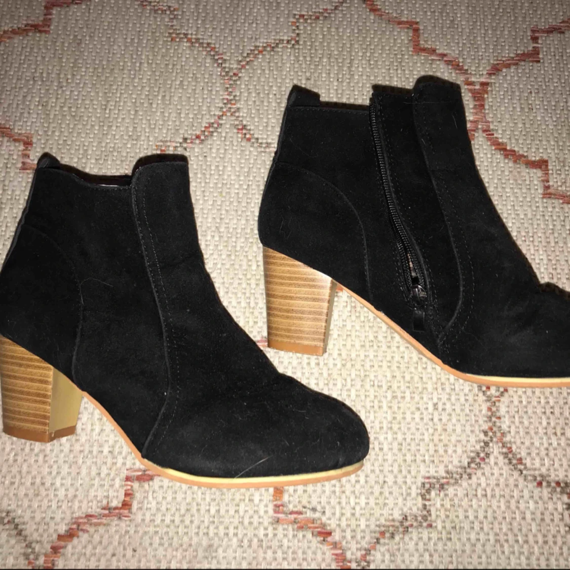 Jag har storlek 39 men skulle säga att den passar 38,5 bättre. Använda ca 4 gånger. Fejk mocka.