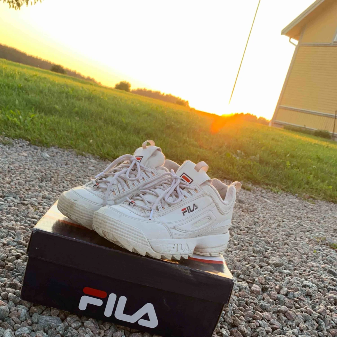 Hej Säljer ett par fina Fila distuptor low, i st 38. De är använda i ungefär tre månader, men säljer pga mina fötter har växt. Eventuell frakt betalas av köparen🌸