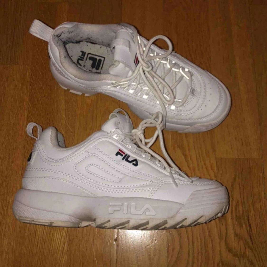 Fila distruptor i strl 36. Använda men ändå i gott skick. Möts i Stockholm eller fraktar. Köpare står för frakt.