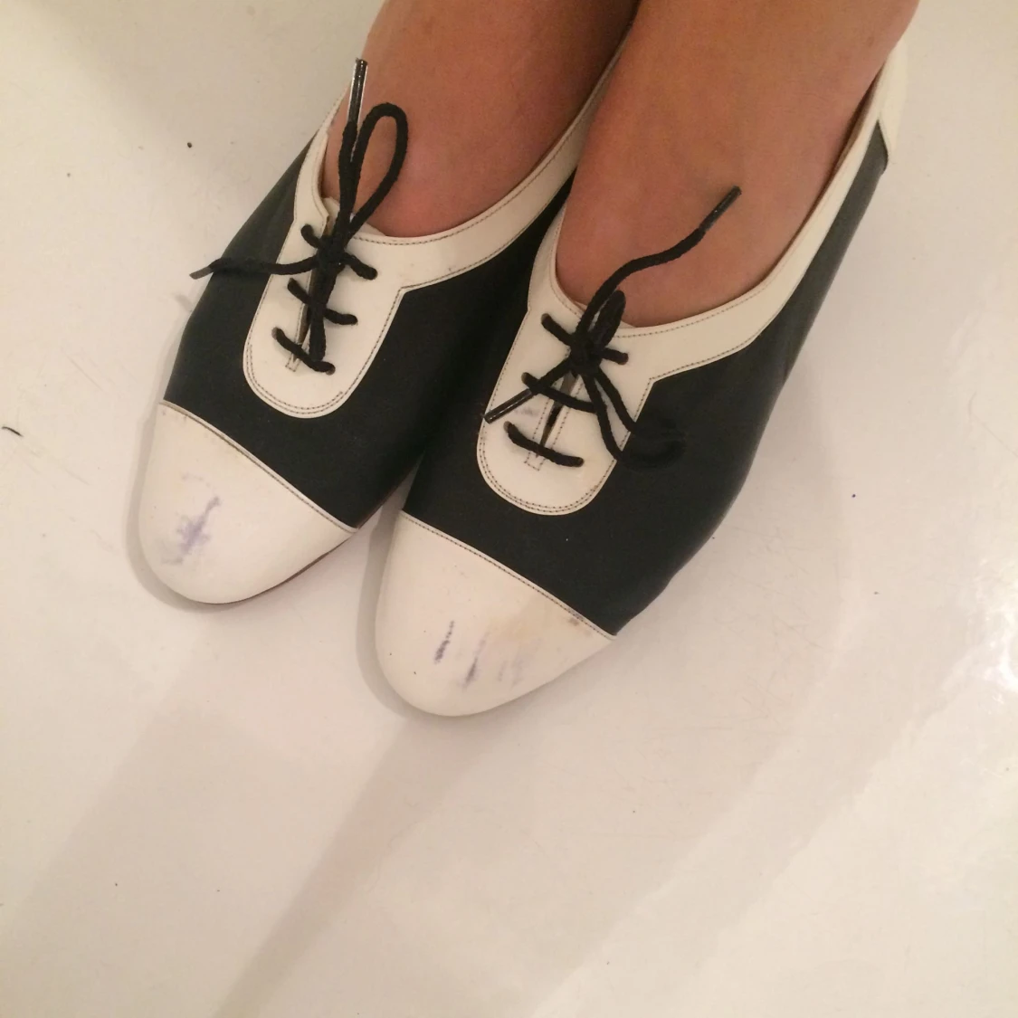 Unika lackskor i svart å vit. Egen design av små företag märket Geronimo. Aldrig använda! Frakt eller upphämtning.