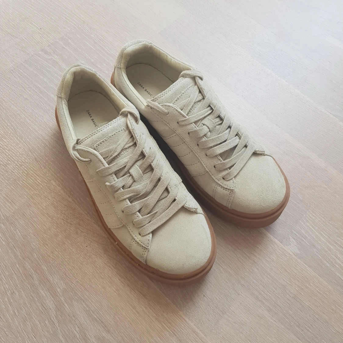 Helt nya från Zara, aldrig använda (bara provat hemma). Storlek 37 men passar även mig son har 37-38. Gjorda av äkta mocka och håller suuuuuper länge (hade ett annat par och den höll mer än ett år) Frakt betalas av köparen! Kan träffas i täby, Danderyds sjukhus eller TC