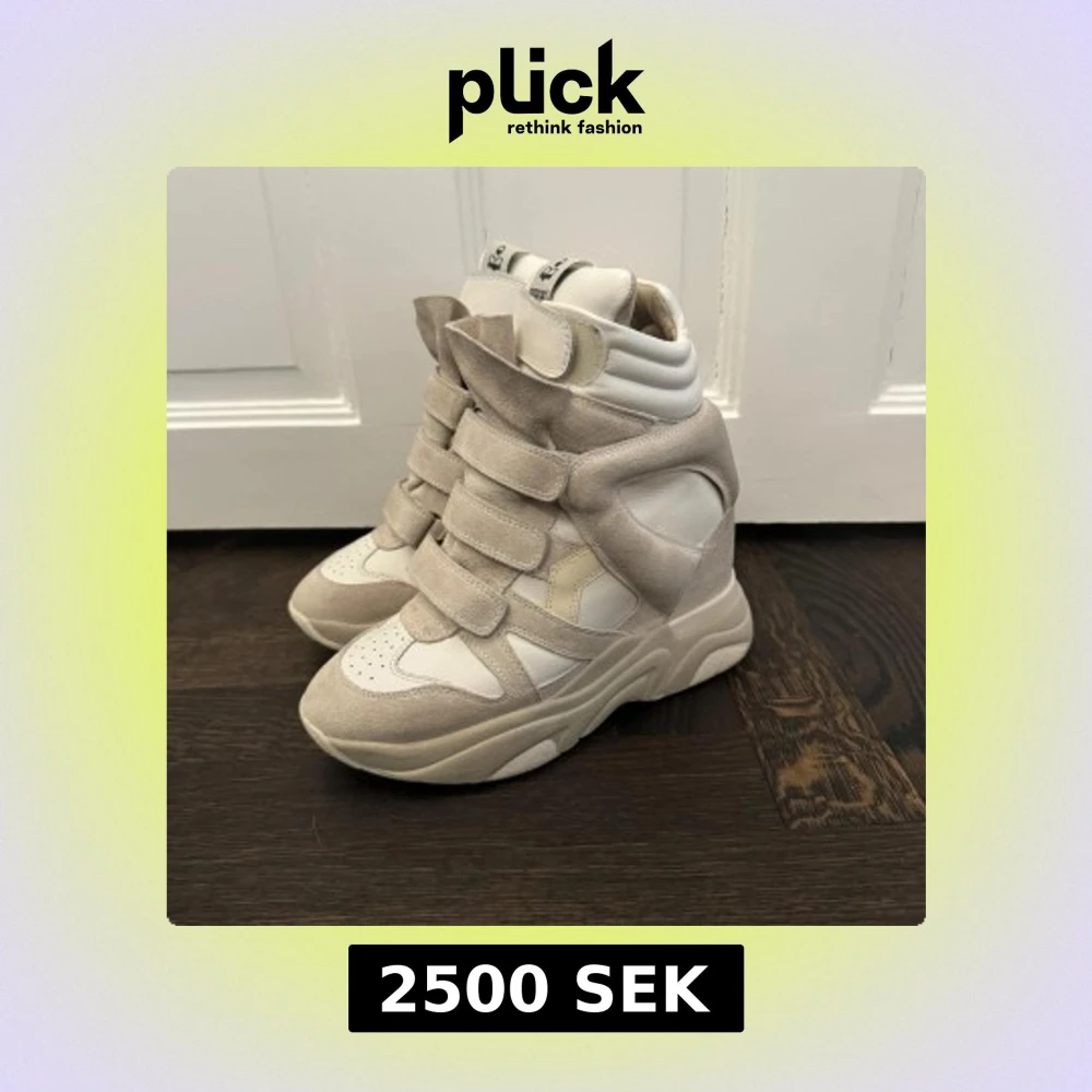 Snygga beige balskee sneakers från Isabel Marant med hög sula och kardborreband. I storlek 39 och fint skick 🤍orginal kartong och påse medföljer