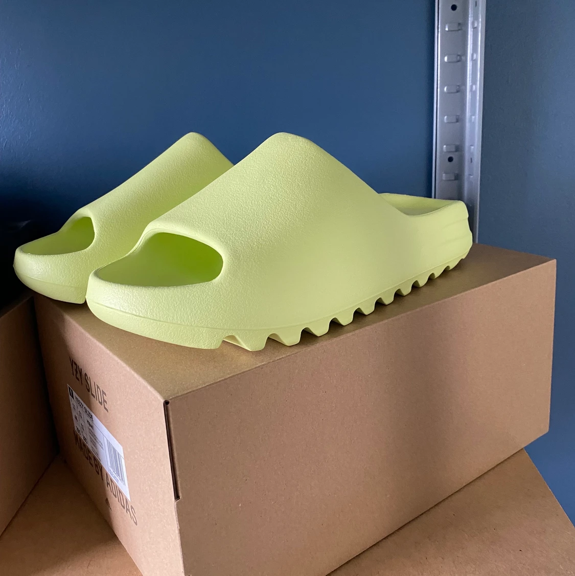 Säljer nu dessa Yeezy slides i storlek 46 Eu! Det är de absolut skönaste tofflorna man kan ha på sommaren så kan starkt rekommendera dem. Skriv till mig vid frågor eller ifall ni vill ha fler bilder.