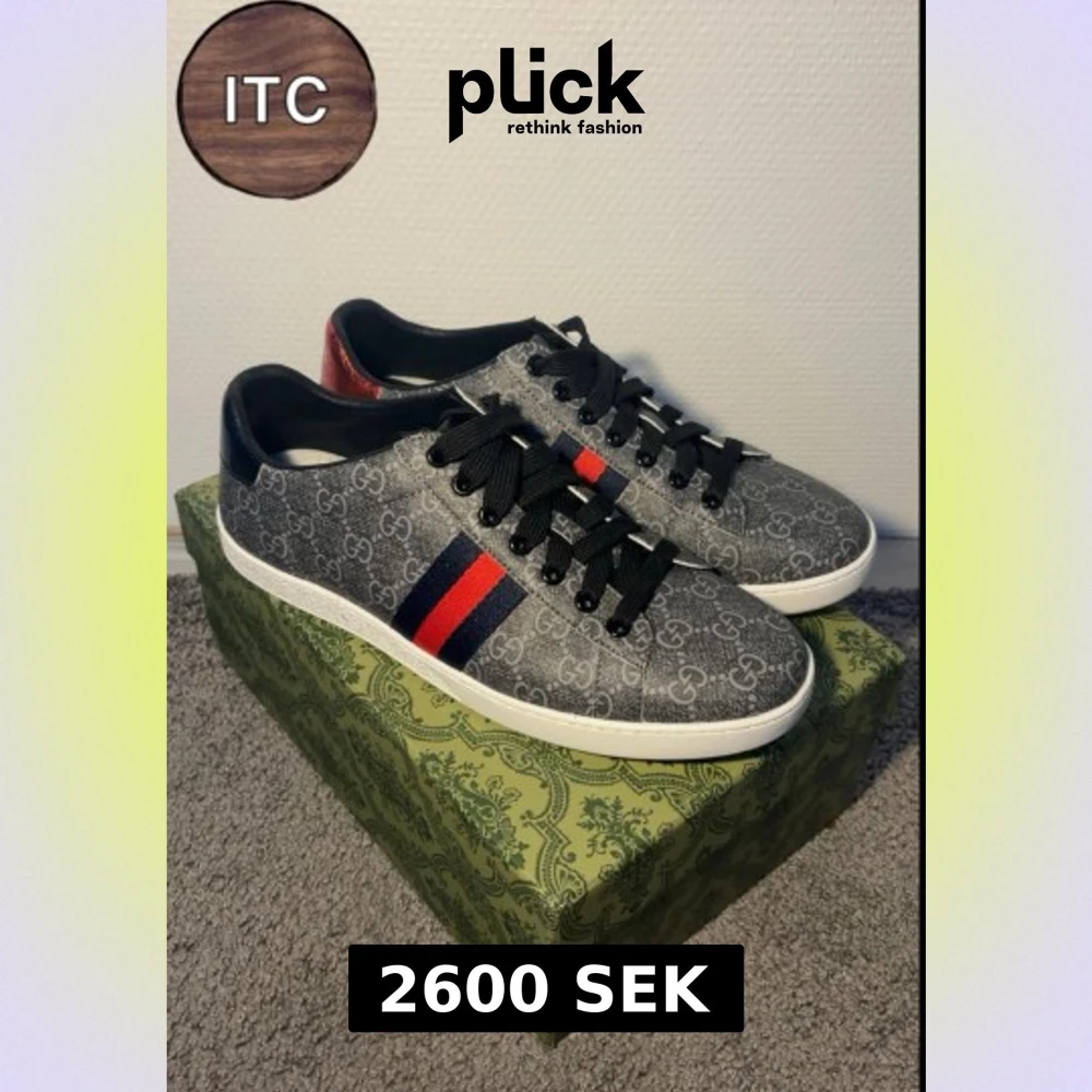 Snygga Gucci ace i svart/grått med klassiskt GG-mönster över hela skon. Endast andvända 1 gång och kommer med box osv!